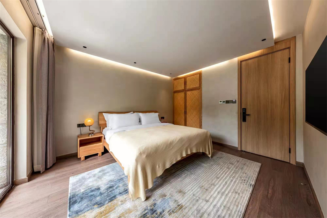 世界止不住的喧哗,浅隐已然成奢。入山三十里,新筑石头房,私享莫干山.后坞.心晴花园,莫干山后坞心晴花园民宿地处德清筏头后坞,这里青山隽秀,清泉满名,森林覆盖率高达97.7%,空气质量优良率达97.5%,睁开眼便是满山遍野的翠竹;这里气静,水静,土静,没有城市的喧哗,没有常年的雾霾,几乎看不到企业。有的只是如画一般的风景,抬头是蓝天白云,低头是茫茫竹海,干净整洁的乡村道路旁矗立着当年蒋先生为夫人种下的浪漫法国梧桐;这里被《纽约时报》推荐为“全球值得一去”的地方,排名18位,是您修身养性的佳地。民宿距国家4A级避暑胜地-莫干山风景区15分钟车程,距莫干山峡谷漂流5分钟车程,民宿主体为天然石头别墅造型(冬暖夏凉),庭院式结构,住宿餐饮一体。自配心晴菜园,提供无污染的绿色农耕菜,配有停车场。客人可在白天欣赏茂盛葱郁的竹林,徒步登山,游泳,垂钓,或问主人借辆车吧,亦可环游周边美景。晚上欣赏着繁星漫天夜景,聆听着竹海滔滔的同时亦可烧烤助兴。在2020年进行了装修,风格为北欧现代风,符合年轻人的喜好。 莫干山后坞心晴花园民宿规模适中,配套设施齐全,配备专业的KTV设备、棋牌等娱乐设施,集休闲、度假、观景、娱乐为一体。 住宿环境: 客房:能同时入住16人,房型有亲子间、大床房,房间均配有中央热水器,24小时供应热水,床单被套一客一换。 客房设施:每个房间均配有独立卫生间、电视、空调和无线WiFi。