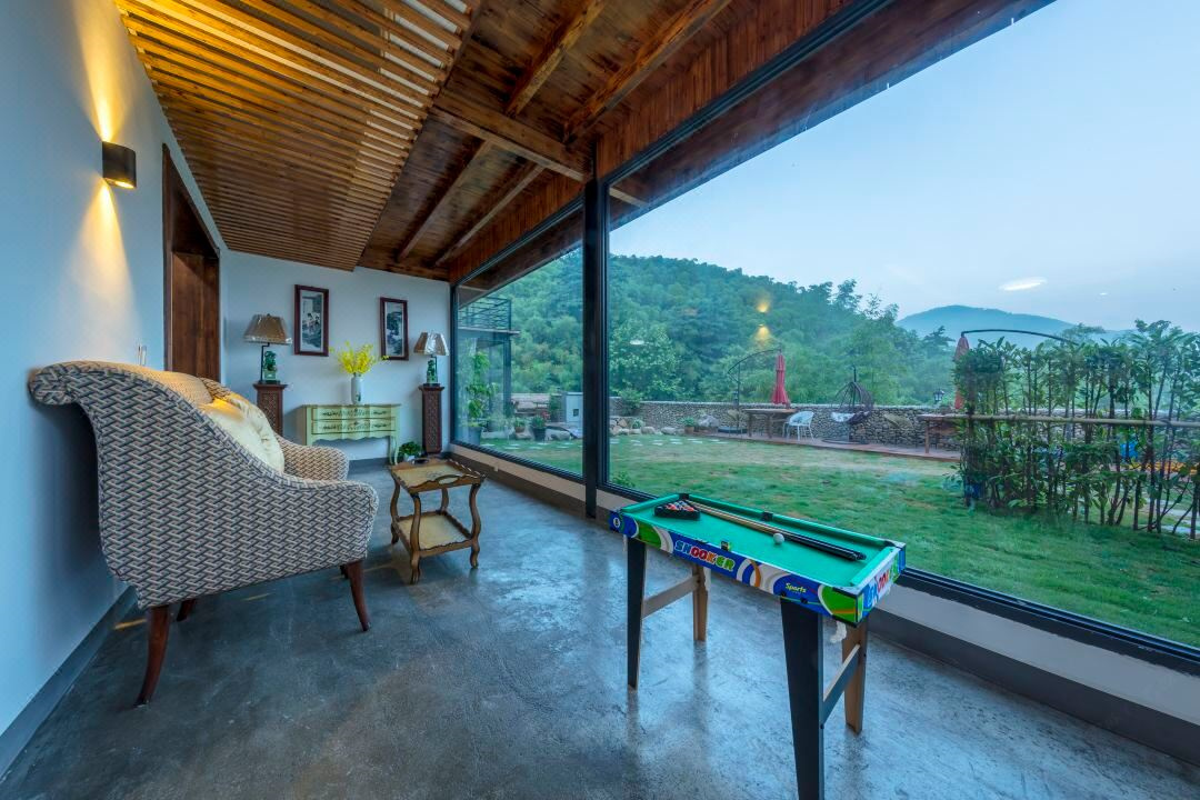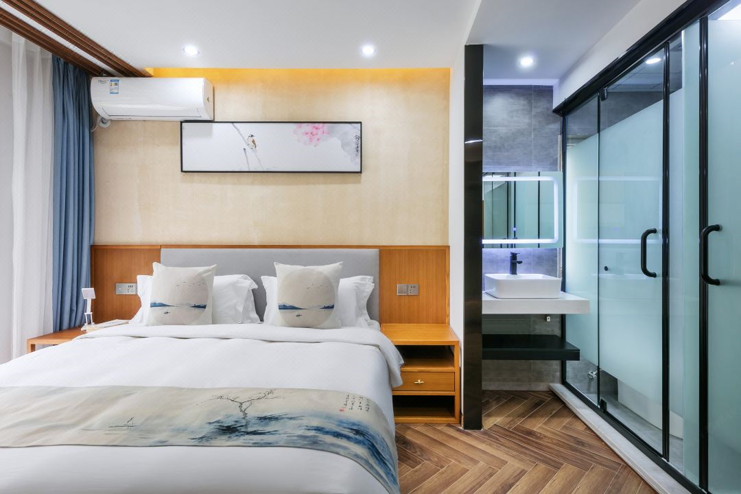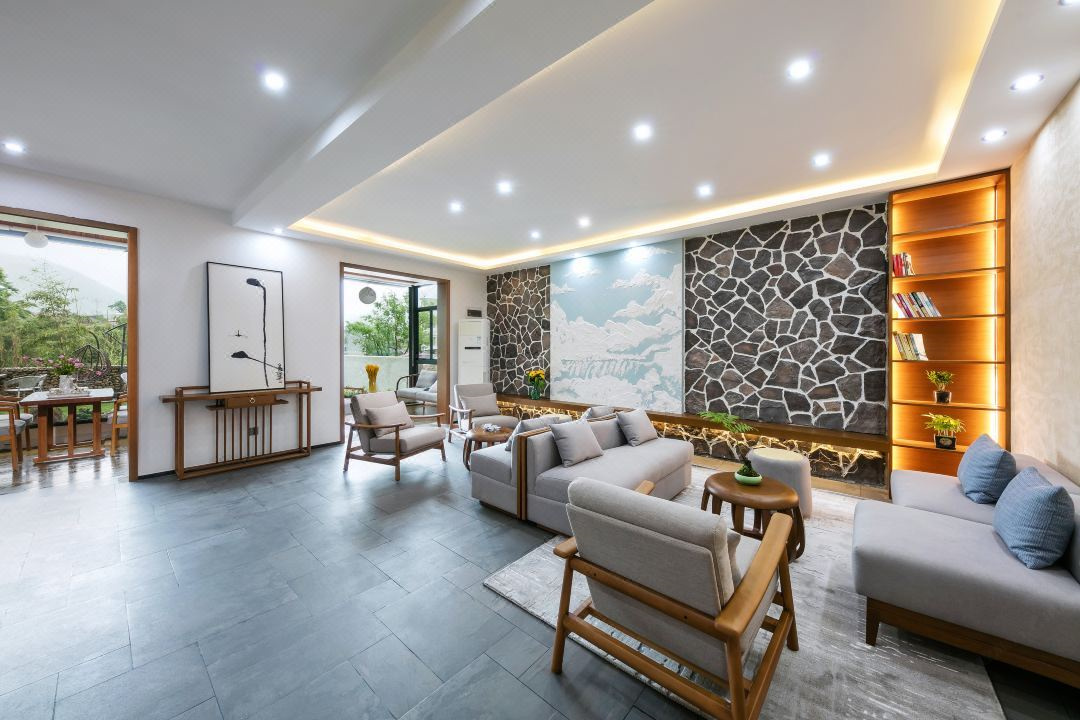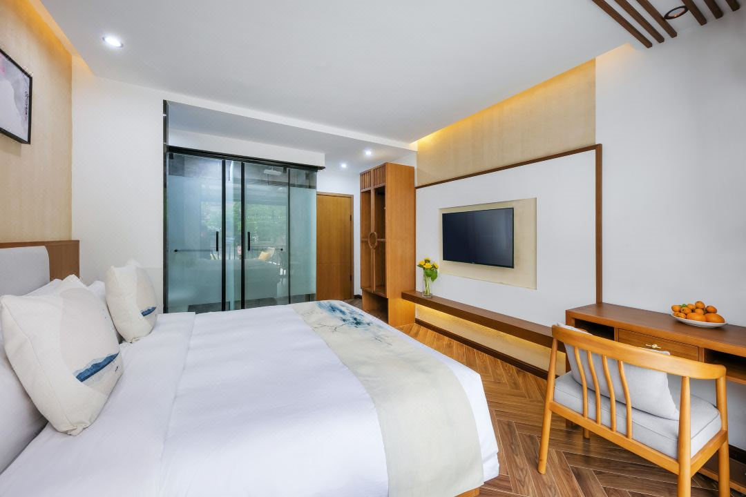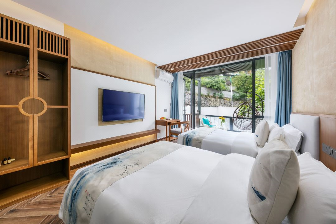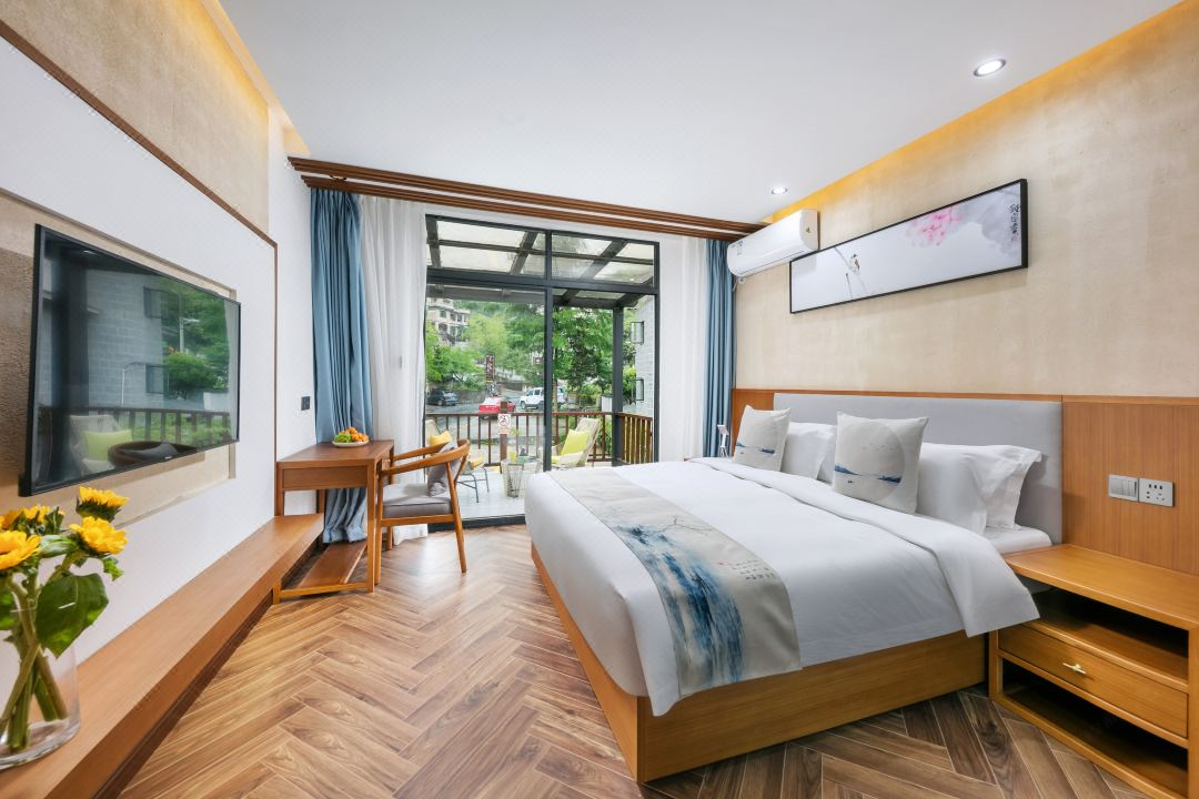 芳华阁度假民宿位于浙江湖州德清,坐落于莫干山镇后坞村景区内,紧邻莫干山主景区,背靠竹林大山,连绵山脉,视野开阔。“云住青山山不老,水去尘土土未净”描绘的就是这里的味道和景致。民宿冬暖夏凉,休闲大客厅、餐厅、大阳台、泳池、鱼池、蹦床、草坪庭院、会议厅、KTV、麻将房、团建多功能厅应有尽有。您可以在客栈喝茶、喝咖啡、看书;也可以到附近的田野小溪散步,顺着古道逛到莫干山主景区;抑或是在大阳台上练瑜珈,在大草坪上拍美美的照片。客栈的女主人热爱烹饪,用当地的传统方法烹制农家菜,她烧的土鸡煲、红烧鱼、有机蔬菜等远道而来的客人吃了都说好。民宿的设计和改造旨在营造舒适、静心的私密空间,每一个房间都有外挑式露台,让人与自然融为一体。去除旅途的疲乏,舒展身心,守护您一整晚的好眠。真正让您体验到山川为伴,鸟兽为朋的山野意境。好客的主人会为您泡上一壶当地特有的莫干黄芽,与您一起放缓生活的脚步,陪您一起早观日出,夜数星星。“行到水穷处,坐看云起时”,芳华阁期待和您开启一场慢生活之旅。 芳华阁度假民宿规模适中,配套设施齐全,配备专业的KTV设备、棋牌等娱乐设施,集休闲、度假、观景、娱乐为一体。 住宿环境: 客房:能同时入住33人,房型有标间、三人间、亲子间、大床房,房间均配有中央热水器,24小时供应热水,床单被套一客一换。 客房设施:每个房间均配有独立卫生间、电视、空调和无线WiFi。