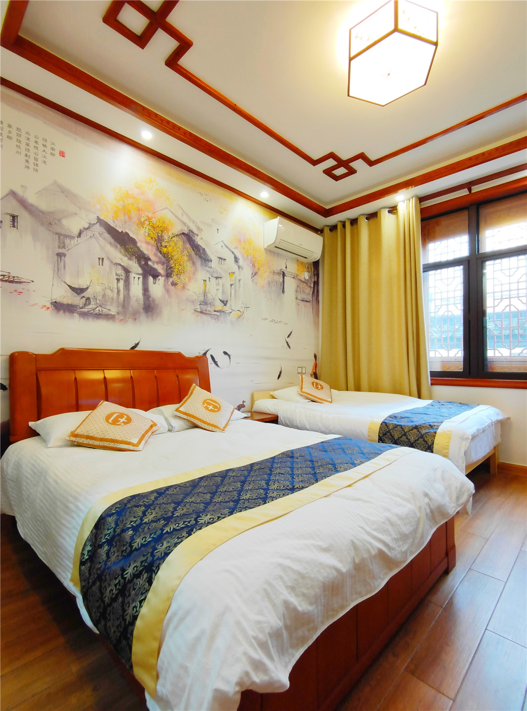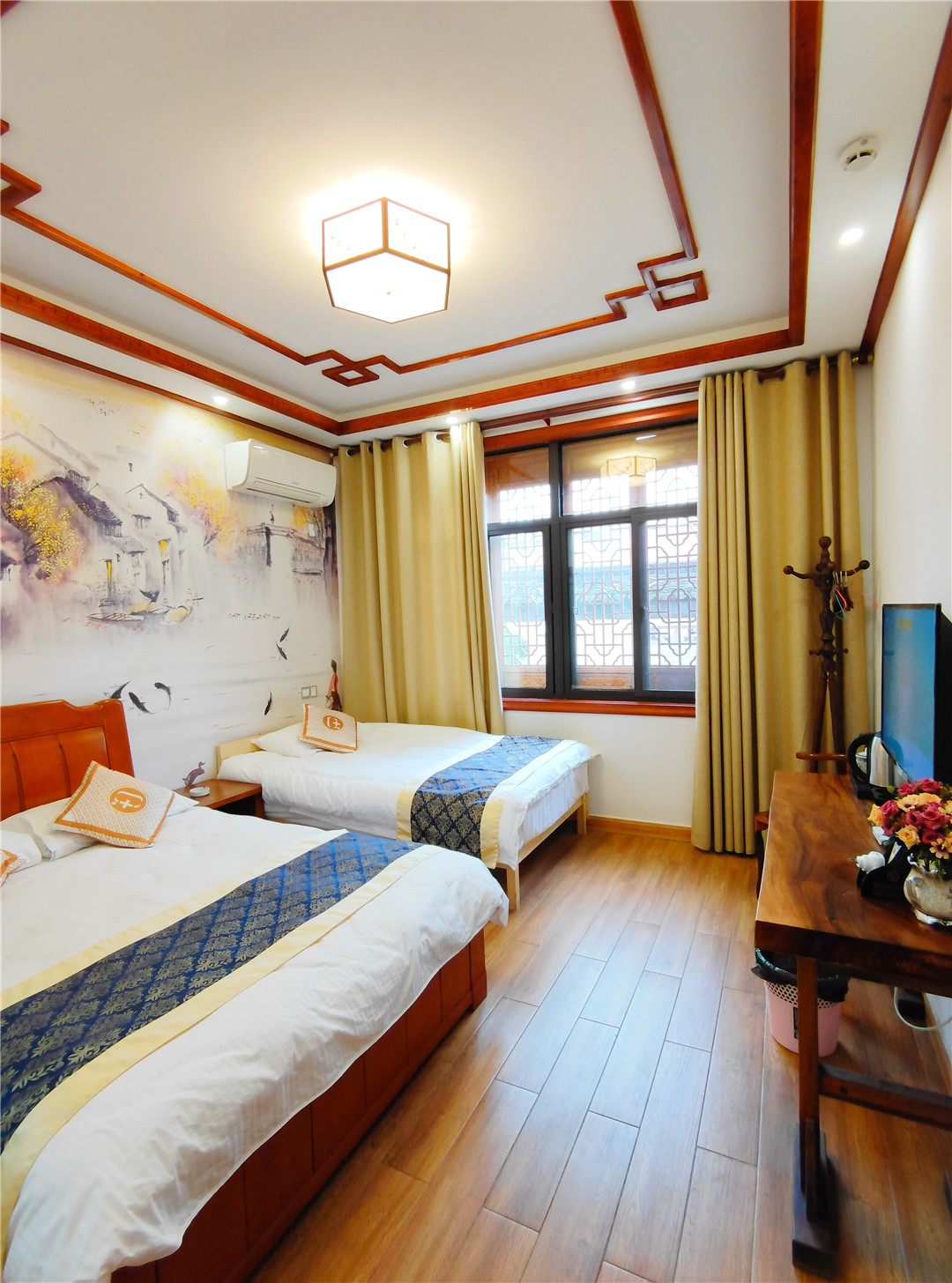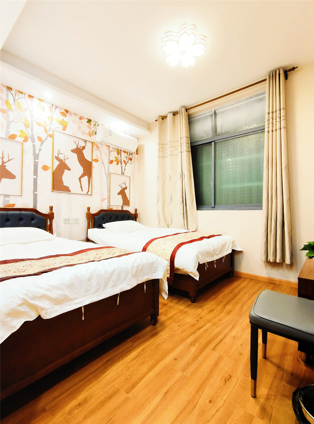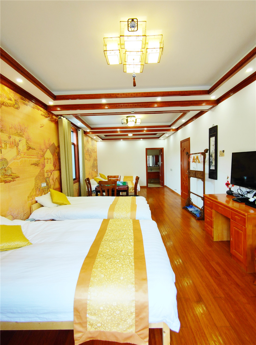 亲子间8间(1.5+1.2),标间23间(1.2),大床房7间(1.8),三人间6间(1.2)