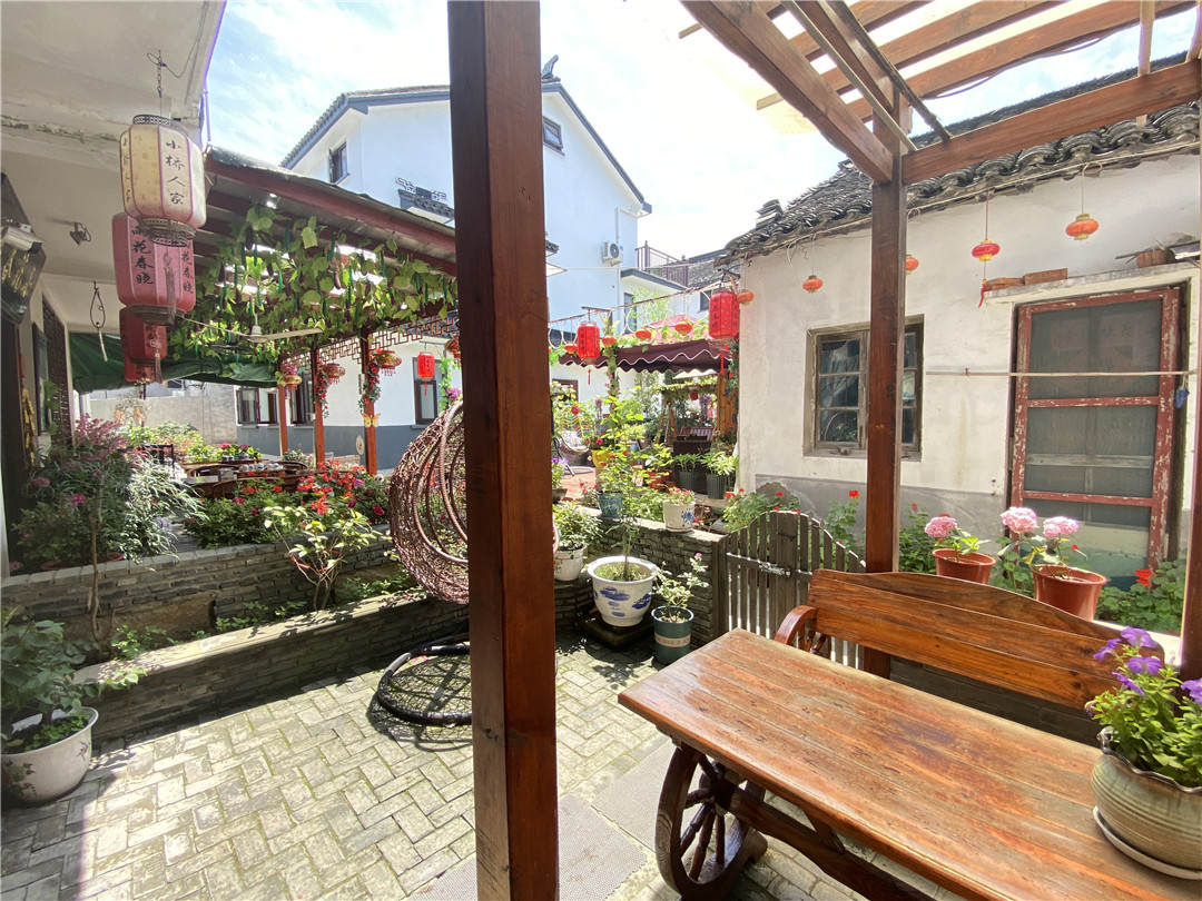 昆山周庄小桥人家是周庄万家庄服务中心004号家庭客房,卫生,整洁。有现代标房和雕花古床两种房型。客栈整体建筑在两条小河的丁字口,开窗可以见水,开门则可戏水。本店是周庄闹中取静的好地方,离沈厅步行仅2分钟时间。可在门口的河边茶座聊天,钓鱼。昆山周庄小桥人家有饭店与停车场。 昆山周庄小桥人家规模适中,配套设施齐全,集休闲、度假、观景、娱乐为一体。 住宿环境: 客房:能同时入住14人,房型有大床房,房间均配有中央热水器,24小时供应热水,床单被套一客一换。 客房设施:每个房间均配有独立卫生间、电视、空调和无线WiFi。