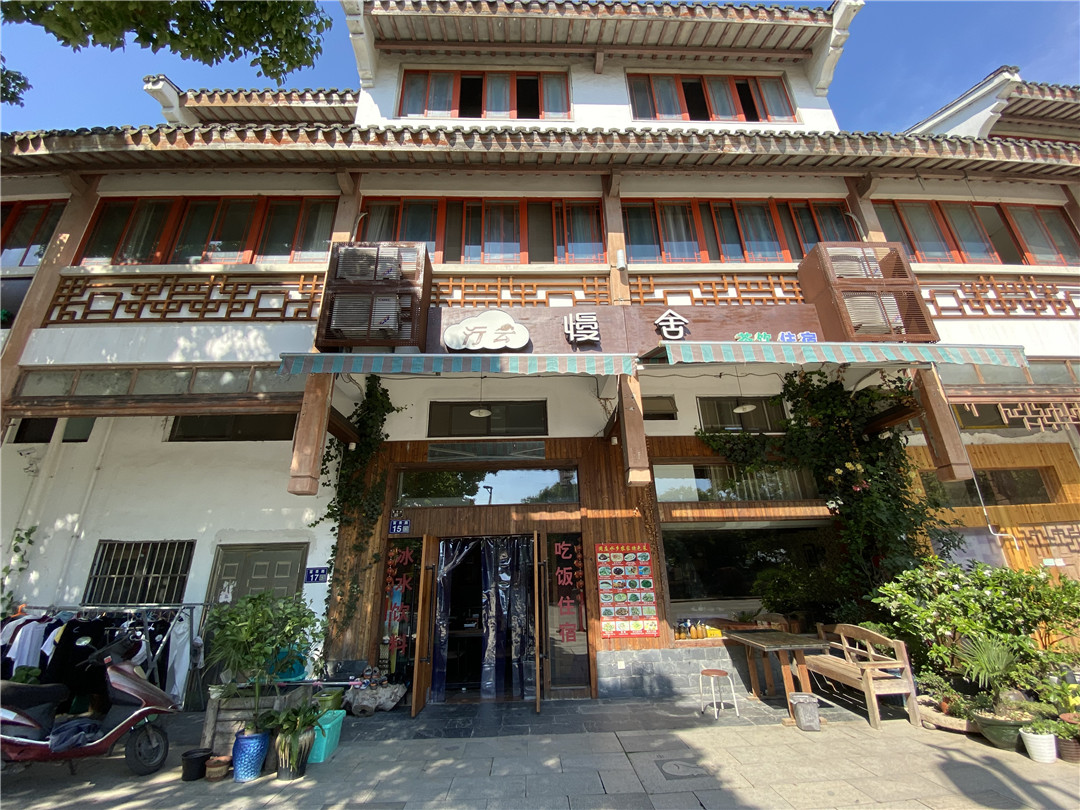 周庄行云·慢舍客栈位于周庄镇富贵路,地处景区检票口,周边环境闹中取静,旅游出行便捷。周庄行云·慢舍客栈外观古朴典雅,内饰清雅别致;客房布置简约不失温馨、舒适通透,多款房型内均配以空调、液晶电视、24小时热水、独立卫浴等设施,打造惬意休眠空间。客栈附设茶室、停车场,入住于此,宾客可感受“杨柳青青江水平,闻郎江上唱歌声”之意境,体验古镇幽静雅致之生活。 周庄行云·慢舍客栈规模适中,配套设施齐全,配备专业的KTV设备、棋牌等娱乐设施,集休闲、度假、观景、娱乐为一体。 住宿环境: 客房:能同时入住16人,房型有标间、亲子间、大床房,房间均配有中央热水器,24小时供应热水,床单被套一客一换。 客房设施:每个房间均配有独立卫生间、电视、空调和无线WiFi。