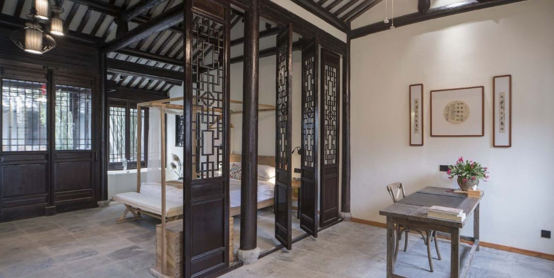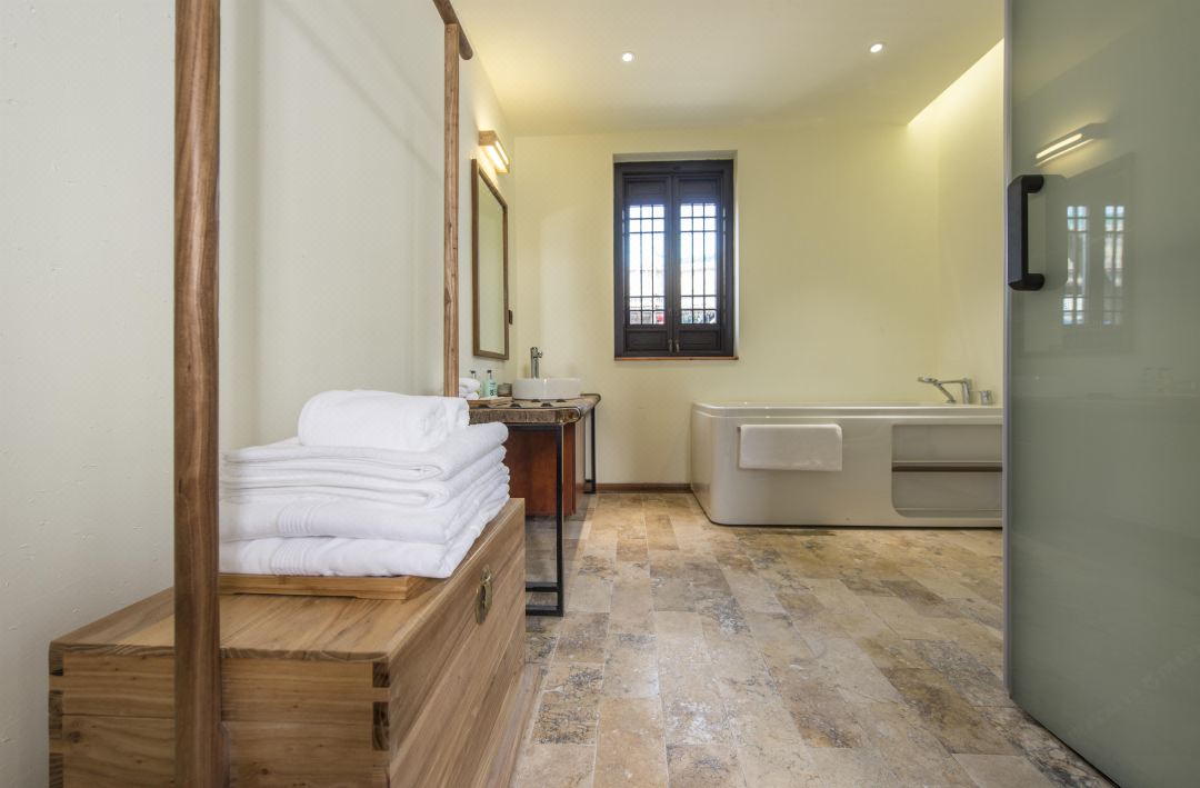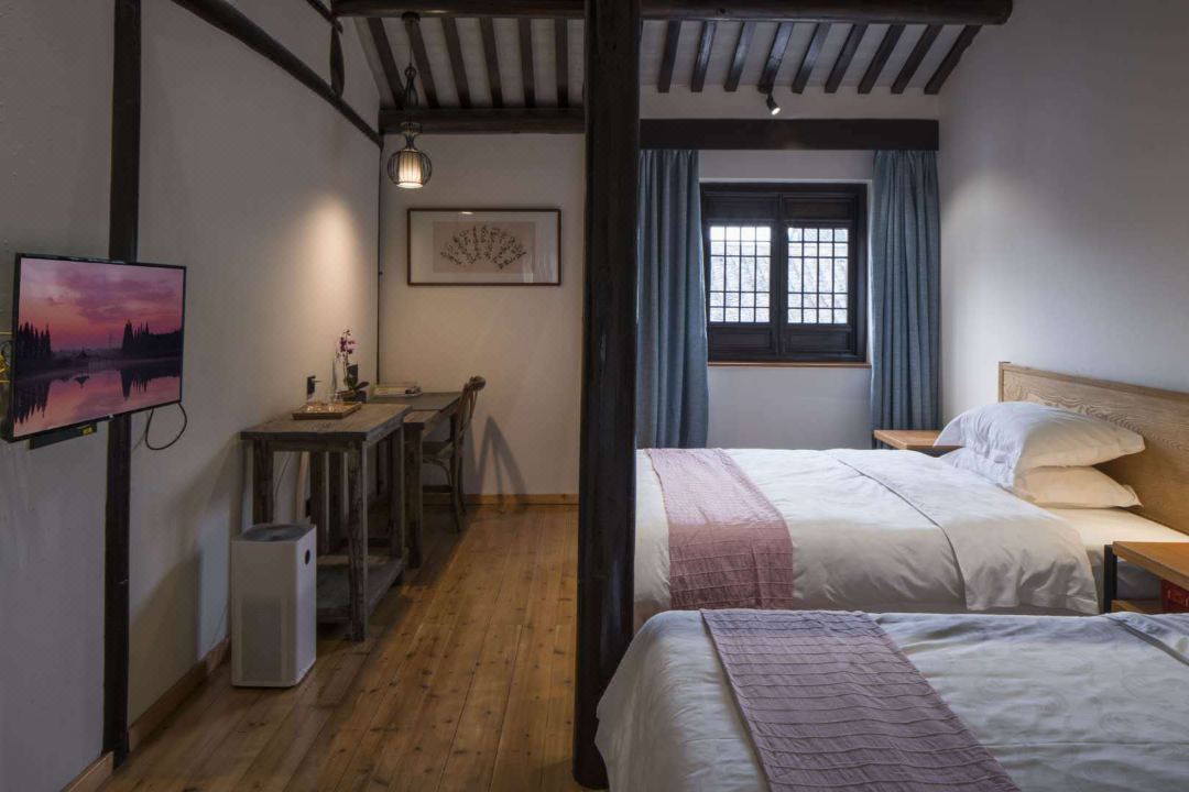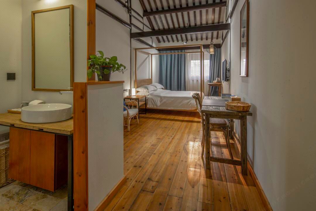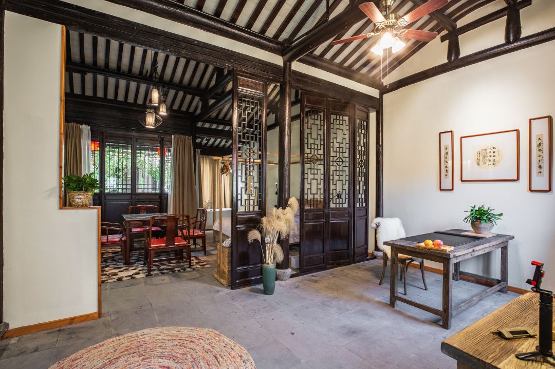 久住民宿坐落于环境优美的5A级旅游景区----沙家浜风景区内,进出景区,有景区电瓶车接送。原宅为刁家大院的后院,木结构房屋,东南临河,西临横泾老街。建筑分前后院,前院为接待餐饮区,后院为休闲住宿区。巧借沙家浜风景区芦苇荡之景,呈现清末明初粉墙黛瓦的江南乡绅民宅之秀,楼阁辉映,假山池塘,树木错落有致,交相辉映,皆具古镇风情和水乡特色。有五个院落,占地面积3亩。 久住民宿设有简餐厅、亲子影音室、DIY活动室、会议室、茶吧等配套设施。预订房间的朋友请注意,久住民宿是木结构老房子,在房间要避免拖拉椅子行李箱和大声说话。 住宿环境: 客房:能同时入住40人,房型有大床房(1.8)6间,标间(1.5+1.3)5间,套房(1.8+1.5)5间,房间均配有中央热水器,24小时供应热水,床单被套一客一换。 客房设施:每个房间均配有独立卫生间、电视、空调和无线WiFi。