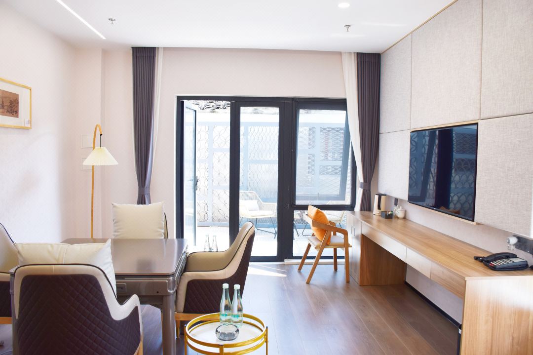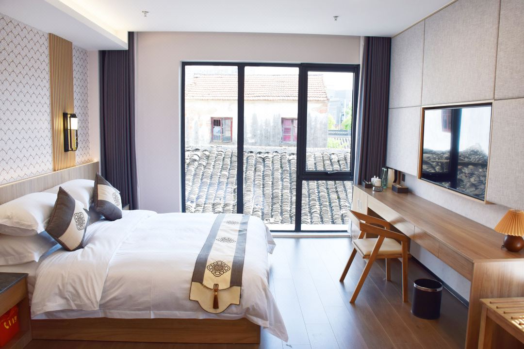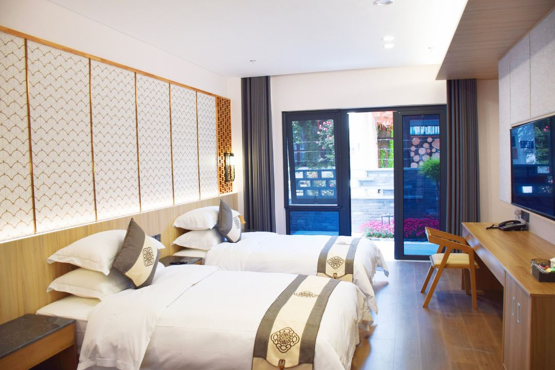 虞溪庭院酒店位于常熟历史文化街区南门坛上中心位置,特有的优雅环境融入南门坛上历史文化与古城的味道,宛进诗画。园林小院,一步一景,让人回归生活,与自然更加亲近,在庭院中喝茶赏花,放松身心,梦回江南。酒店各式房型房间,有庭院复式套房、标准间、大床房,周边有南门坛上地下停车场位198个,充分满足了停车需求。是您休闲度假的首选。 虞溪庭院酒店规模适中,配套设施齐全,配备专业的设备、棋牌等娱乐设施,集休闲、度假、观景、娱乐为一体。 住宿环境: 客房:能同时入住38人,房型有标间8间,大床房9间,套间2套,房间均配有中央热水器,24小时供应热水,床单被套一客一换。 客房设施:每个房间均配有独立卫生间、电视、空调和无线WiFi。