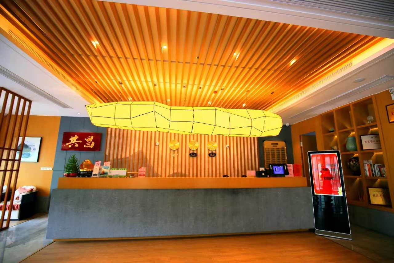 宜兴共昌度假酒店坐落于宜兴阳羡 生态旅游度假区,国家AAAA级旅游区——竹海 风景区入口正对面。酒店距离宜兴高铁站约20 分钟路程,在高铁站有快速、免费旅游大巴可以 直达酒店。酒店拥有景观套房、生态房、商务套 房、各类大床、标准房等风情各异、格调高雅的 房间。酒店拥有大小餐厅、自助餐厅等200多个 餐位。酒店配备了紫砂DIY、茶艺馆、豪华KTV 包厢、棋牌室、土特产超市、咖啡厅等 设施。 优美的环境、贴心的服务,一定会让您满 意而归,尽享非凡人生。酒店靠近竹海景区,坐落于山坡之上,处于山 水之间,空气清新,环境优美,地理位置优越。酒 店内部以竹、紫砂为设计元素,以自然、休闲、文 化为主题。 大厅以竹吊灯、紫砂壶展墙为主题突出了宜兴 紫砂文化的气息,茶艺馆用竹制茶竹筒灯为主题彰 显竹文化特色。 酒店配备酒吧,并邀请实力民谣歌手驻唱,是 集休闲、音乐、餐吧于一体的好去处。酒吧提供吉 他伴奏,给您提供一展歌喉的机会。酒店配备紫砂 DIY,并有紫砂壶工艺师现场制作传授,与您共同 探讨宜兴紫砂文化、历史,交流紫砂壶鉴赏。 酒店房间统一干净整齐,宽敞明亮。卫生间的洗漱用品 一应俱全,房内的设备配置都很齐全,卫浴打扫的一尘不染, 外加落地窗设计,整个竹海的美景尽收眼底。 宜兴共昌度假酒店规模适中,配套设施齐全,配备专业的KTV设备、棋牌等娱乐设施,集休闲、度假、观景、娱乐为一体。 住宿环境: 客房:能同时入住350人,房型有标间68间, 大床23间, 套房5间,三人间4间,房间均配有中央热水器,24小时供应热水,床单被套一客一换。 客房设施:每个房间均配有独立卫生间、电视、空调和无线WiFi.