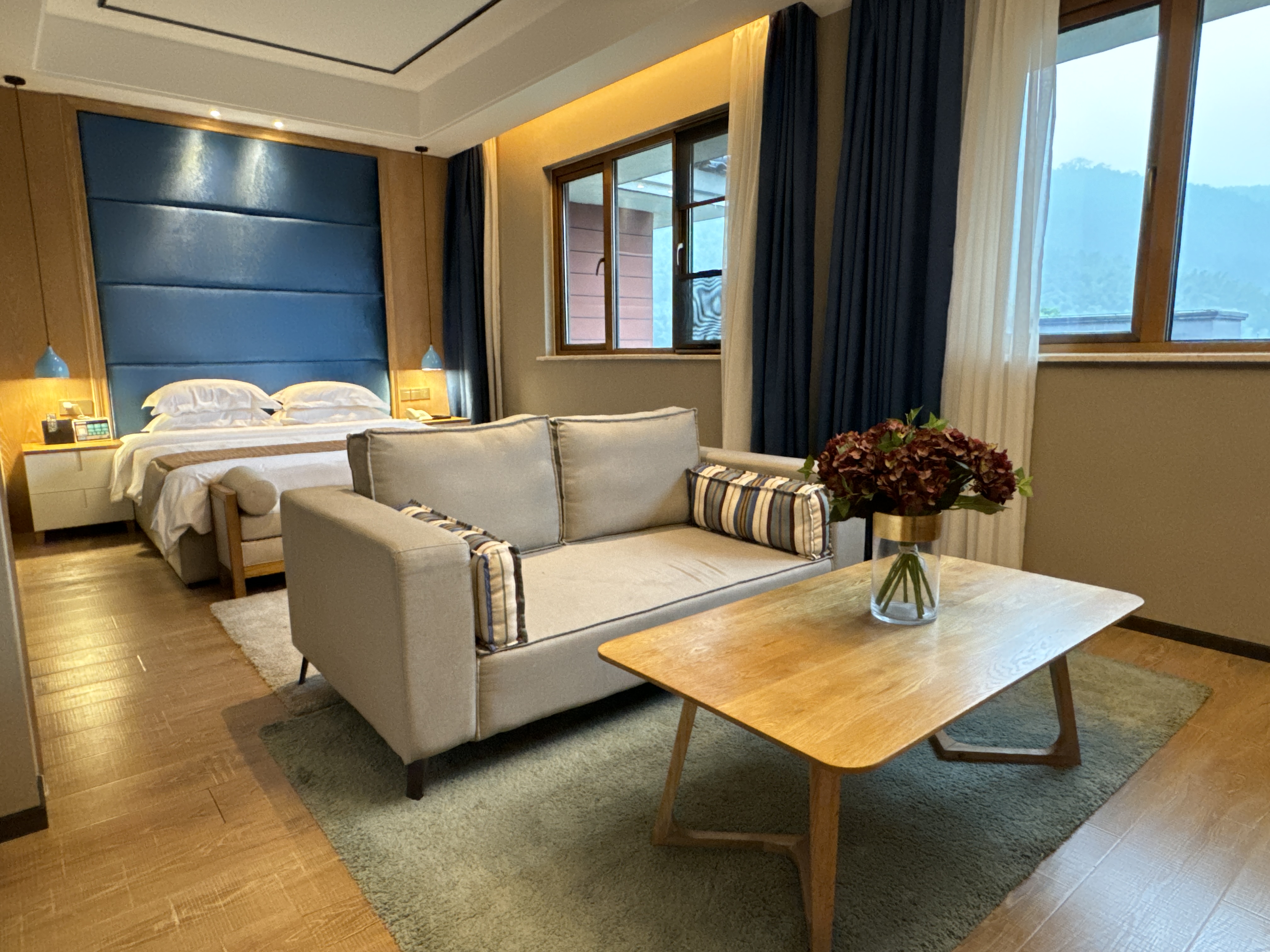 标间68间(普标11间), 大床23间, 套房5间,三人间4间