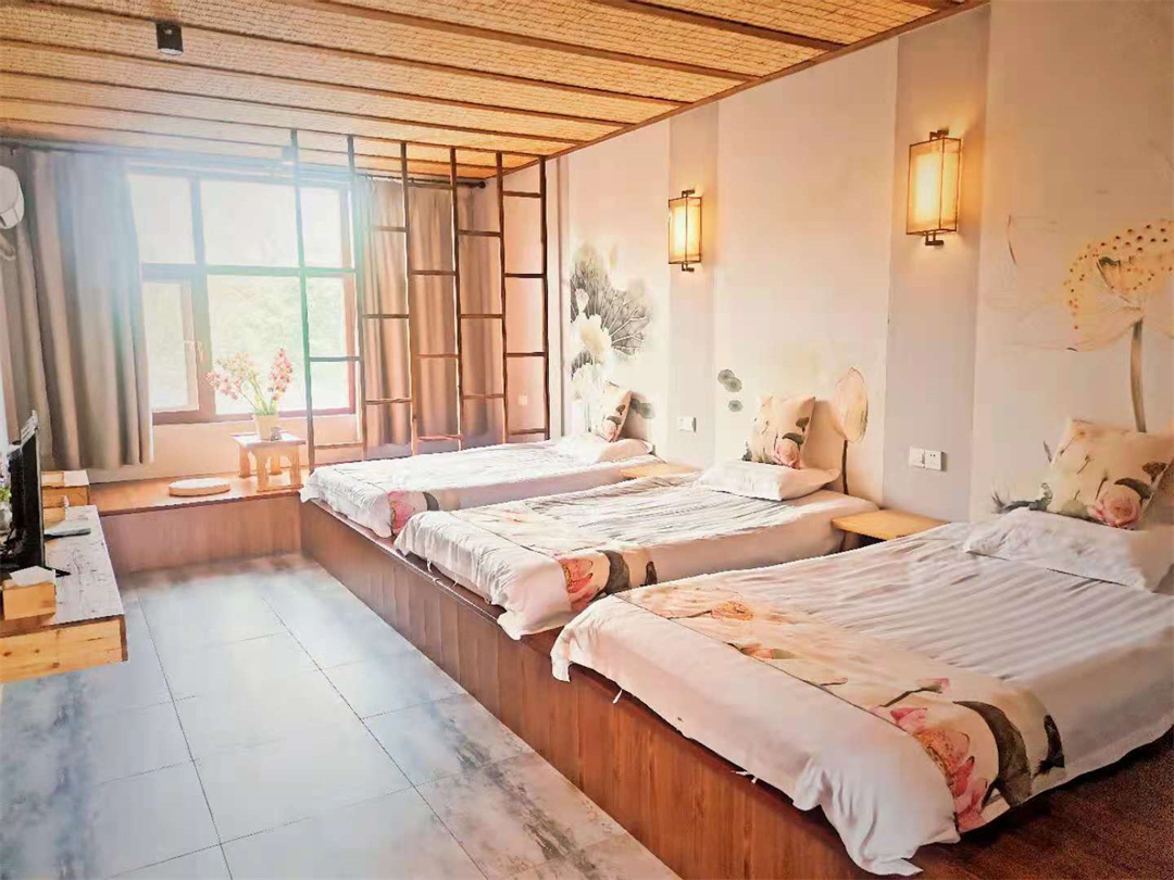三人间4间,双人间8间,大床房4间,高标双人间5间,高标亲子房4间