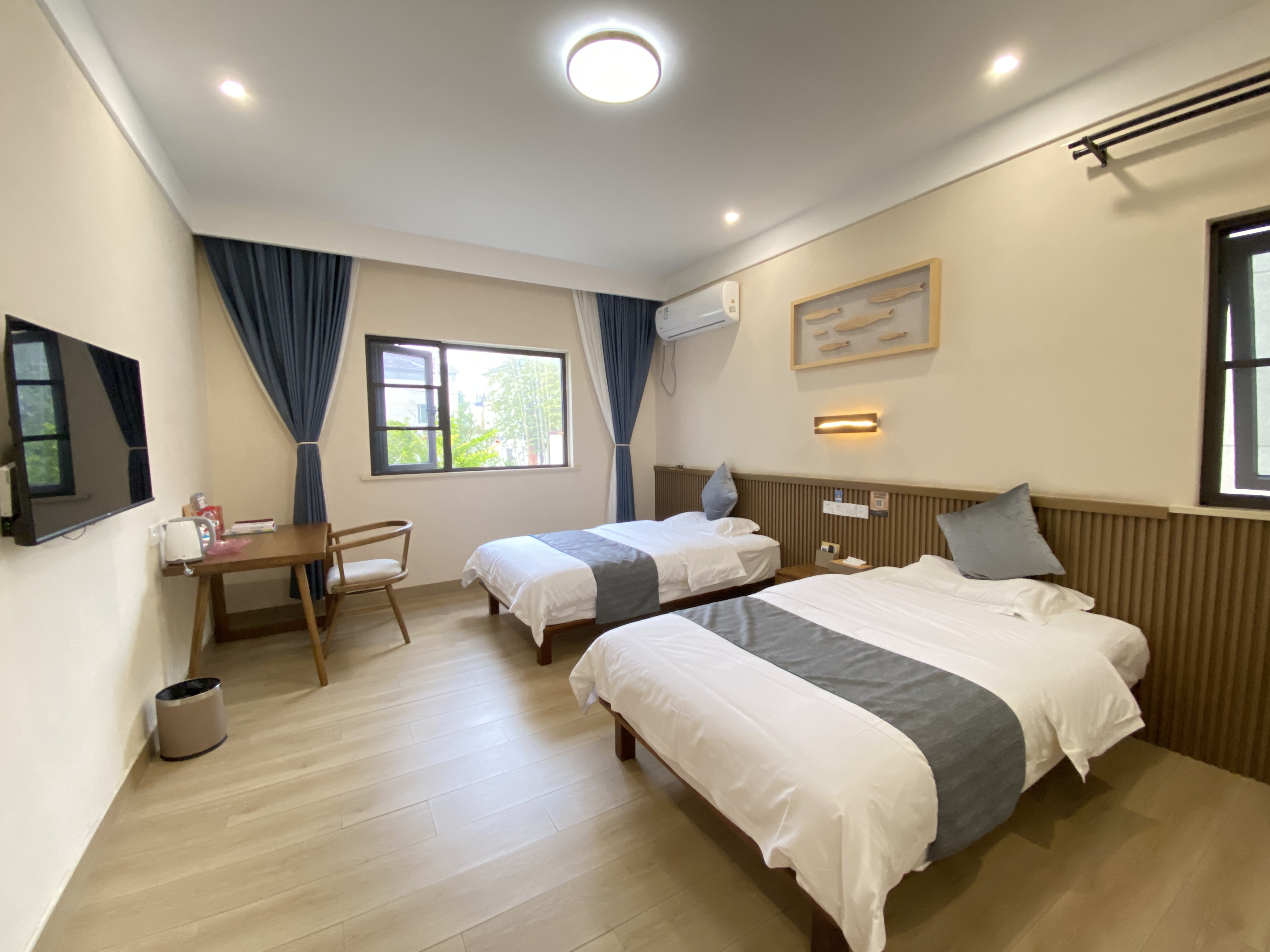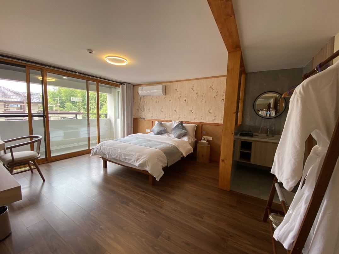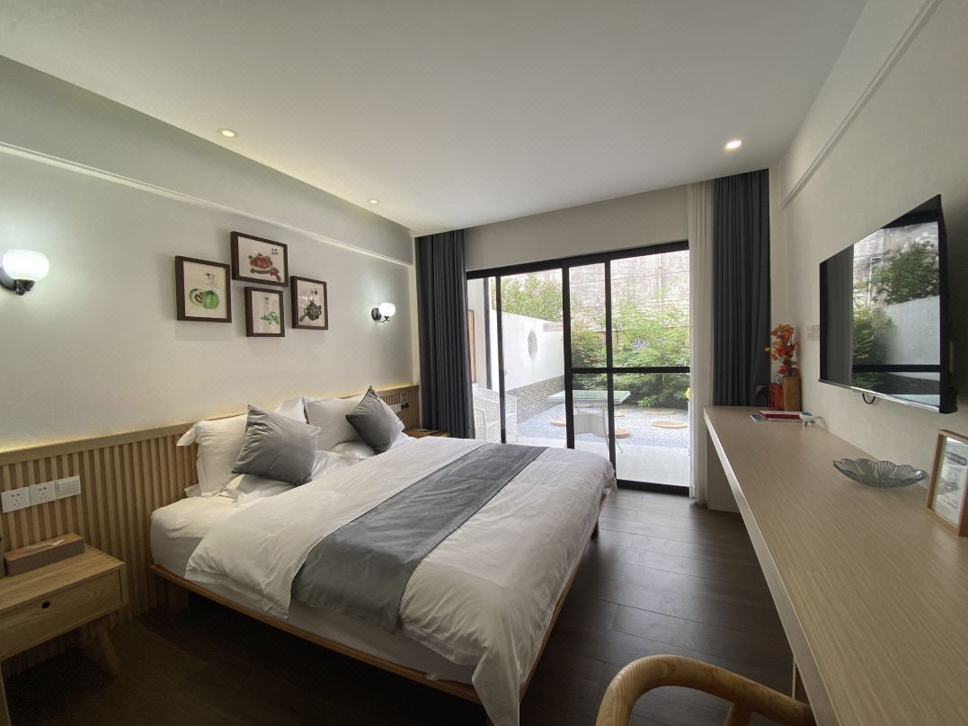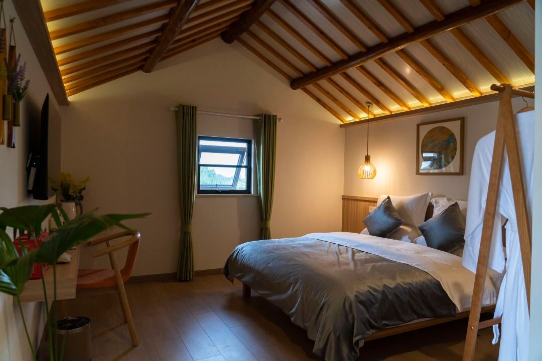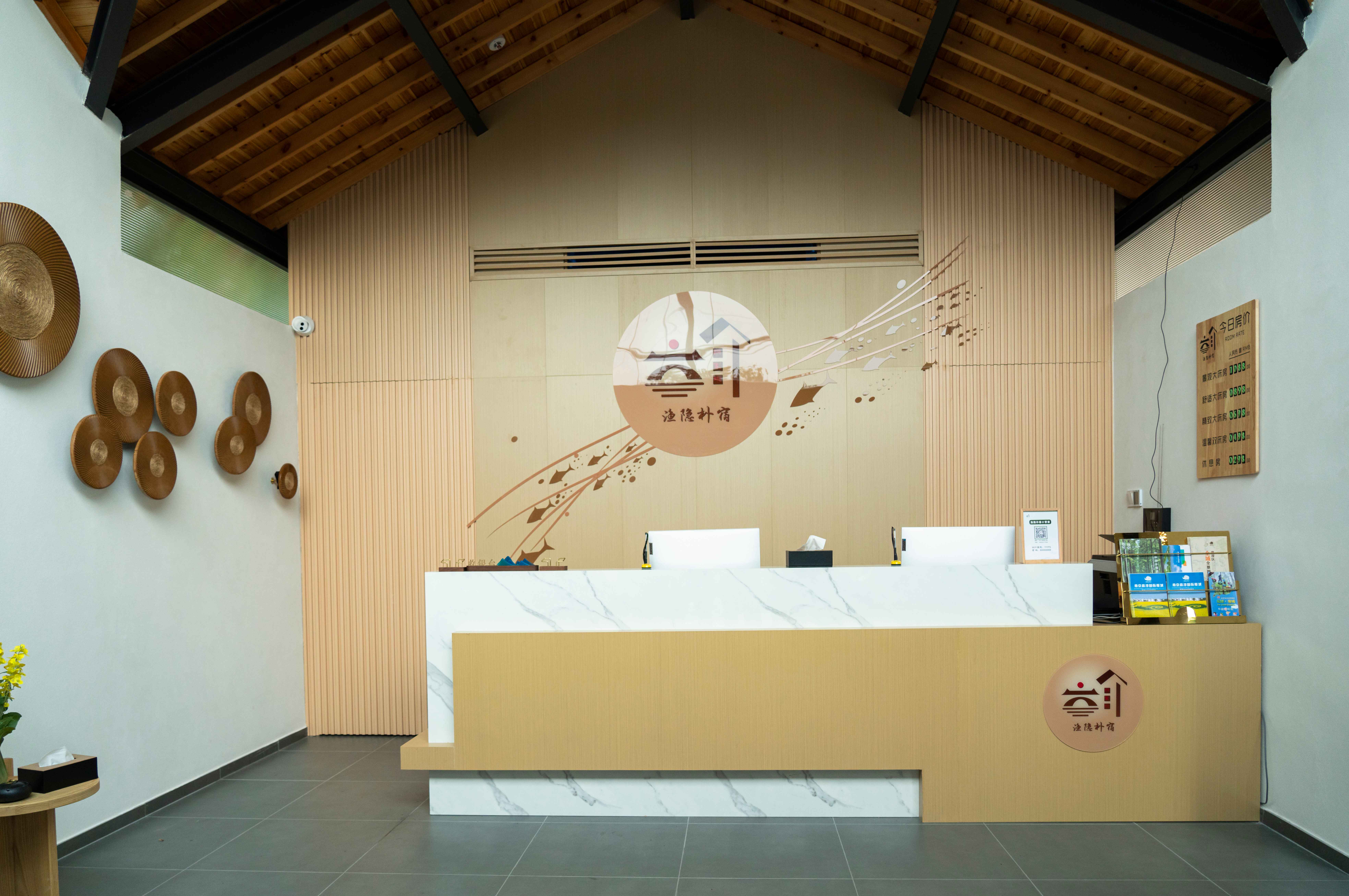 渔隐朴宿度假酒店位于胡家坝自然村,依水而建。2017年胡家坝自然村成为省级美 丽村庄,2021年胡家坝自然村成功入选第三批省级特色田园乡村试点村。不远处就是 中国首个国际慢城“桠溪国际慢城”。“迎湖垂钓,乐享欢聚,放慢生活,放尽心情” 主题思想,打造成集公务接待,旅游度假,休闲养生等众多功能于一体的主题民宿。 沿着村内的小径漫步,头顶是蓝天白云,背靠龙墩湖水库,目光所及到处是一片绿色,感受着凉风习习,颇有顾城笔下“草在结它的种子,风在摇它的叶子,我们站着,不说话,就十分美好”的意境。 渔隐朴宿度假酒店规模适中,配套设施齐全,配备专业的KTV设备、棋牌、咖啡吧、会议室等设施。等娱乐设施,集休闲、度假、观景、娱乐为一体。 住宿环境: 客房:能同时入住62人,客房楼5栋,共31间房,房型有大床房23间,标间2间,亲子间4间,套房2套,房间均配有热水器,24小时供应热水,床单被套一客一换。 客房设施:每个房间均配有独立卫生间、电视、空调和无线WiFi。