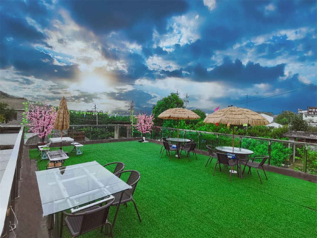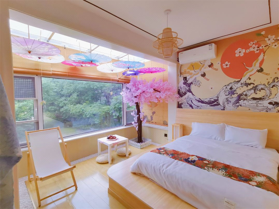 依山桃鸢长春藤民宿位于南京浦口区不老村景区,不老村位于素有“南京绿肺、江北明珠”的老山国家森林公园。珍珠泉景区位于不老村东北方向,另有旅游度假区水墨大埝、响堂桃源谷、西梗莲乡、侯冲风景区、七佛寺、千年古银杏著称的惠济寺、林散之故居等。民宿风景优美,布局雅致,是南京及周围的小伙伴短途度假的优选出行地。 依山桃鸢长春藤民宿规模适中,配套设施齐全,配备专业的KTV设备、棋牌等娱乐设施,集休闲、度假、观景、娱乐为一体。 住宿环境: 客房:周日至周四:660元/晚(7个房间起),周五周六:720元/晚(整包,含三餐)。能同时入住16人,房型有大床房,房间均配有中央热水器,24小时供应热水,床单被套一客一换。 客房设施:每个房间均配有独立卫生间、电视、空调和无线WiFi。