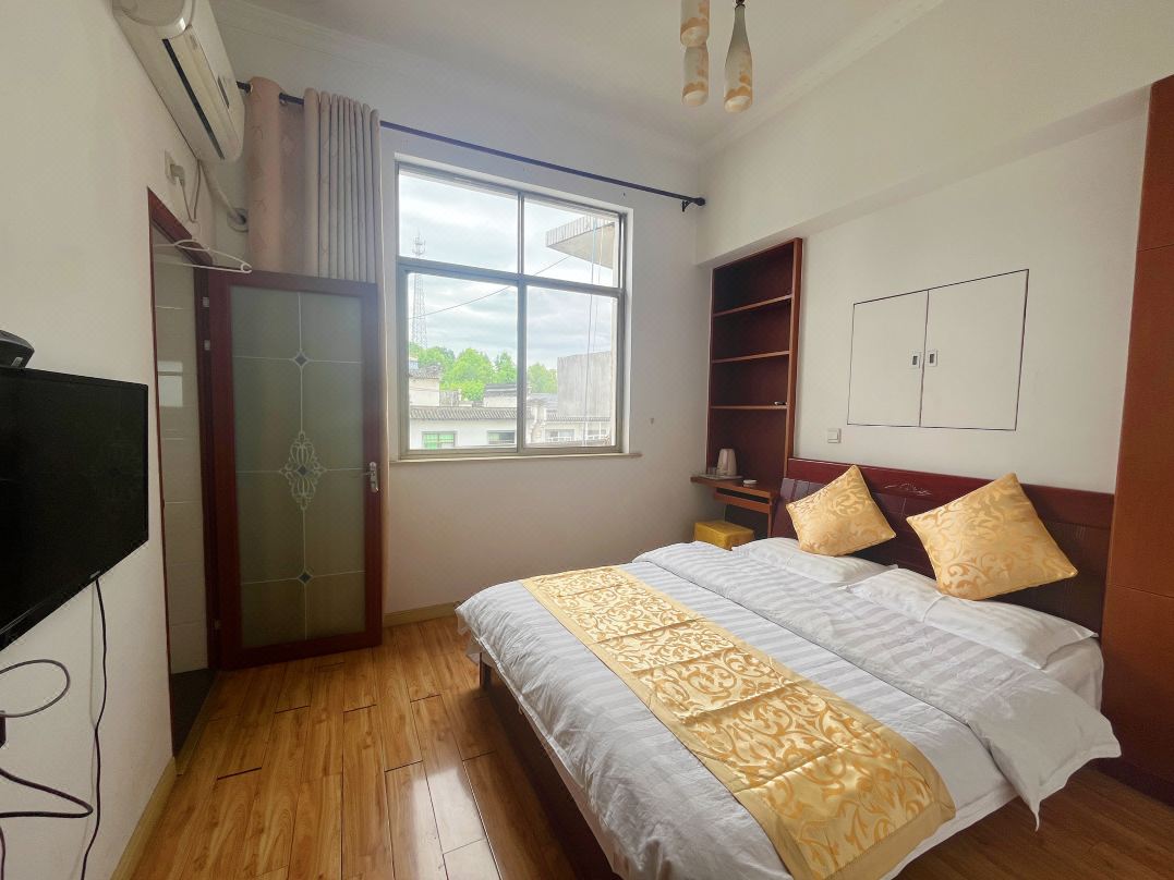 黄山锦园饭店地处古徽州文化旅游区境内,与潜口镇翼峰公园翼峰塔隔街对望,从合铜黄高速岩寺出口行驶1公里即可达,周边围绕众多著名旅游景点,地理位置优越。 黄山锦园饭店规模适中,配套设施齐全,集休闲、度假、观景、娱乐为一体。 住宿环境: 客房:能同时入住21人左右,房型有标间4间,大床房2间,亲子间1间,三人间2间,房间均配有中央热水器,24小时供应热水,床单被套一客一换。 客房设施:每个房间均配有独立卫生间、电视、空调和无线WiFi。