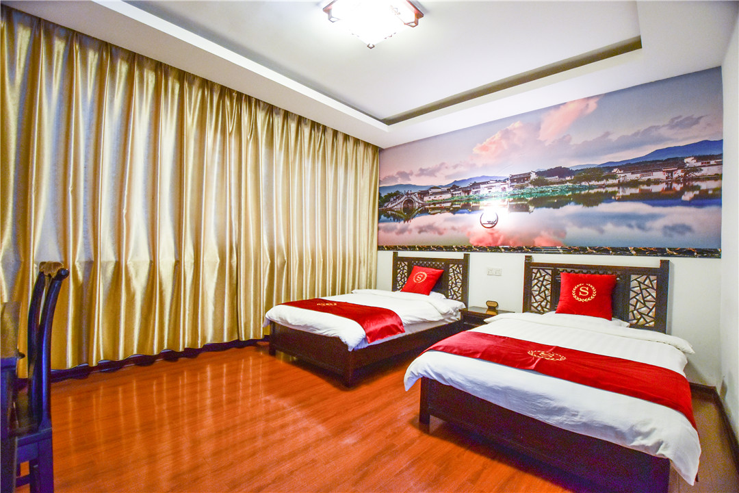溪畔人家位于安徽省黄山市黟县西递村,距离西递景区1200米,是一家集白族民居与现代建筑想结合的餐饮客栈,建筑风格非常有特点。 溪畔人家规模适中,配套设施齐全,配备专业的棋牌等娱乐设施,集休闲、度假、观景、娱乐为一体。 住宿环境: 客房:能同时入住15人左右,房型有标间、大床房、家庭房,房间均配有中央热水器,24小时供应热水,床单被套一客一换。 客房设施:每个房间均配有独立卫生间、电视、空调和无线WiFi。