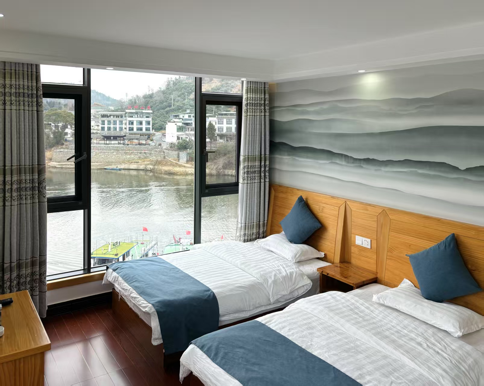 歙县深渡山水宾馆 位于安徽歙县深渡镇,以文明经营、热情淳朴为理念,以整洁、安全、文明为宗旨,以绿色餐饮、绿色休闲、绿色服务”为品牌。真诚的欢迎四方客人前来休息度假。 歙县深渡山水宾馆 规模适中,配套设施齐全,配备专业的棋牌等娱乐设施,集休闲、度假、观景、娱乐为一体。 住宿环境: 客房:能同时入住32人,房型有标间10间,三人间4间,房间均配有中央热水器,24小时供应热水,床单被套一客一换。 客房设施:每个房间均配有独立卫生间、电视、空调和无线WiFi。