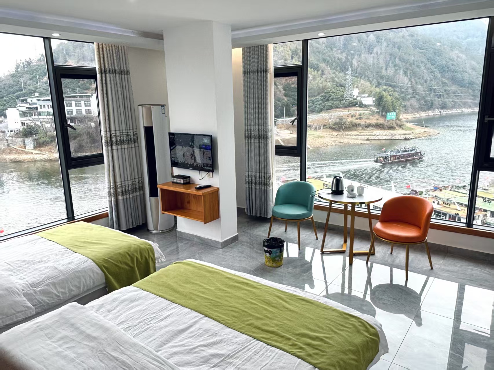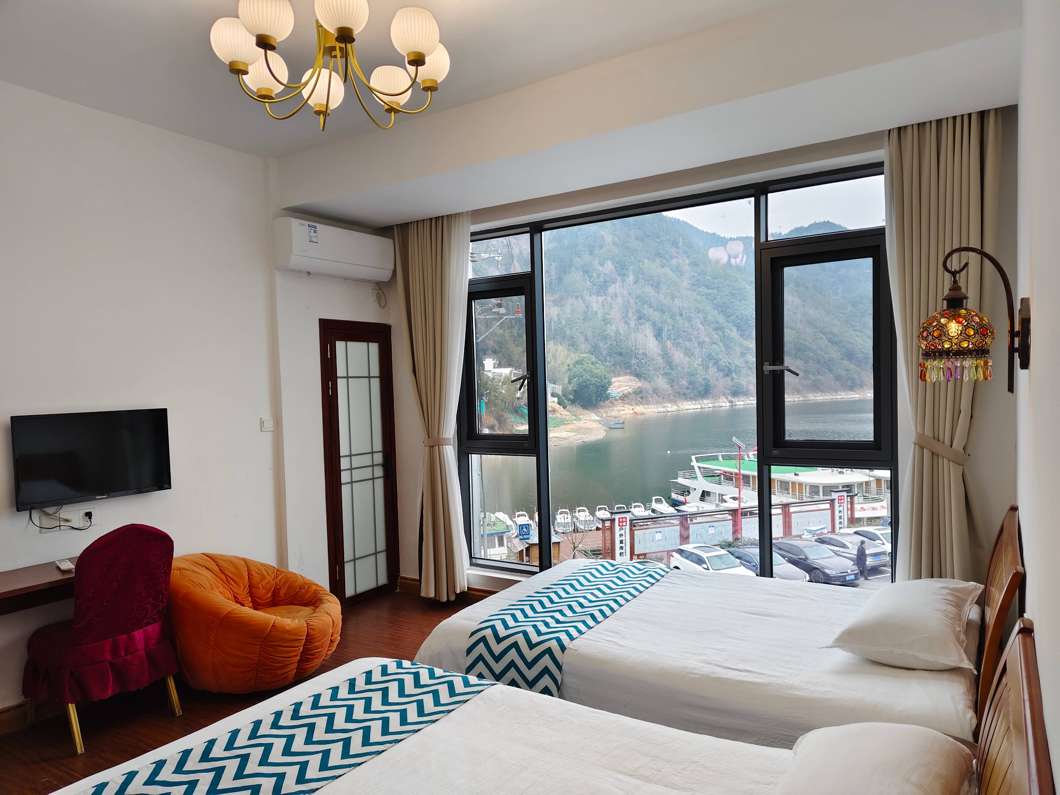 黄山歙县家韵客栈位于深渡镇黄山大道,经济实惠,交通便利,干净整洁。 黄山歙县家韵客栈规模适中,配套设施齐全,集休闲、度假、观景、娱乐为一体。 住宿环境: 客房:能同时入住13人,房型有标间4间,大床1间,三人间1间,房间均配有中央热水器,24小时供应热水,床单被套一客一换。 客房设施:每个房间均配有独立卫生间、电视、空调和无线WiFi。