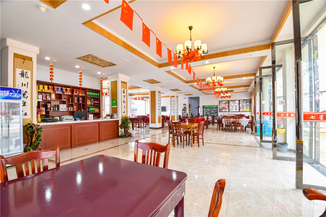 七星楼酒店位于安徽省宣城市绩溪县龙川村,交通便利,有大型停车场。酒店拥有客房30余间,可同时接待上百人同时进餐。 七星楼酒店规模适中,配套设施齐全,配备专业的KTV设备、棋牌等娱乐设施,集休闲、度假、观景、娱乐为一体。 住宿环境: 客房:能同时入住62人左右,房型有标间、大床房、亲子房,房间均配有中央热水器,24小时供应热水,床单被套一客一换。 客房设施:每个房间均配有独立卫生间、电视、空调和无线WiFi。