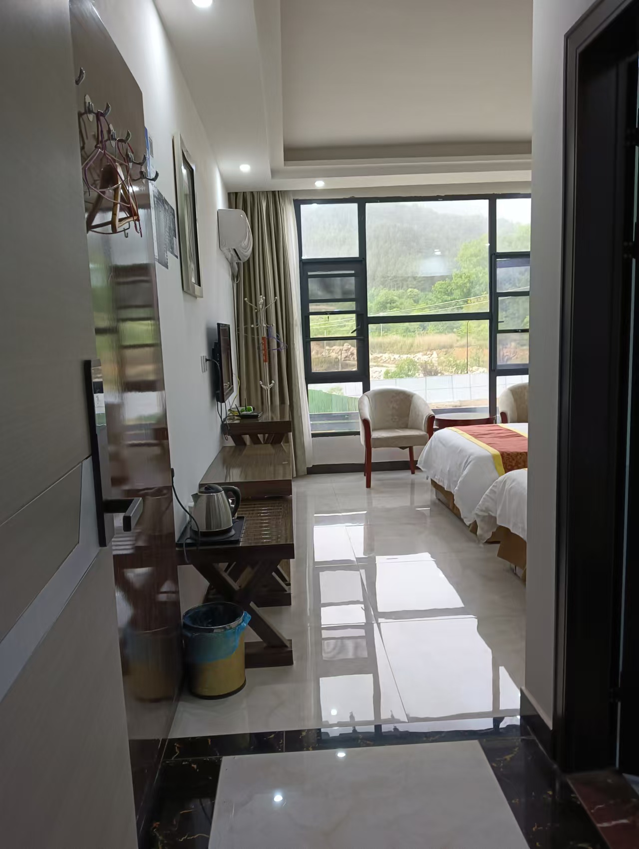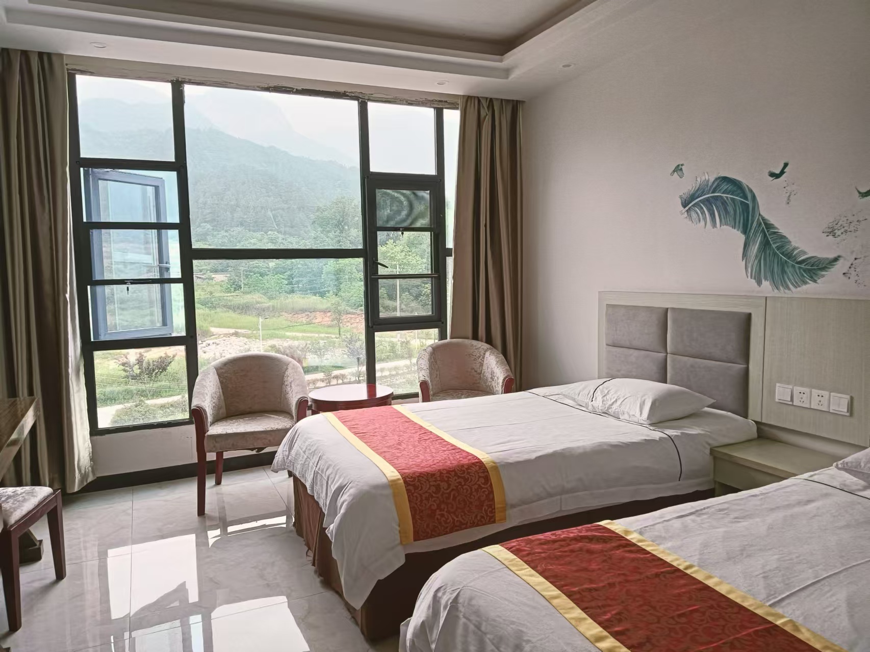 天堂寨喜结缘民宿位于天堂寨风景区脚下,距离天堂寨东门很近,站在民宿门口抬头就可看到雄伟的白马峰。周边有六安客车站,公交车站。民宿拥有超大的停车场,为您提供免费停车服务。地理位置优越,交通便利。 天堂寨喜结缘民宿规模适中,配套设施齐全,配备专业的KTV设备、棋牌等娱乐设施,集休闲、度假、观景、娱乐为一体。 住宿环境: 客房:能同时入住20人左右,房型有标间、大床房、三人间,房间均配有中央热水器,24小时供应热水,床单被套一客一换。 客房设施:每个房间均配有独立卫生间、电视、空调和无线WiFi。