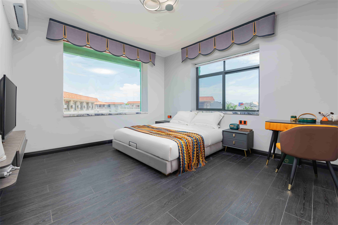 心归喜色民宿位于北海银滩国家旅游度假区中心,毗邻国际客运港和侨港风情小镇,步行几分钟即达银滩景区,天下第一滩与绵延数十里的碧波浴场触手可及。民宿以色彩缤纷的搭配打造成城堡式的别墅酒店,心归喜色拥有私享庭院,私享泳池,私享亲子乐园等各式房型,无论是蜜月,闺蜜出行或亲子度假均可满足住宿所需。 心归喜色民宿规模适中,配有自主的餐厅,烧烤场,亲子乐园等,店里可安排派对、团建等各种活动,只希望在这里能够给您带来简单的快乐!欢迎全国的朋友来到心归喜色! 住宿环境: 客房:能同时入住40人,房型有大床房6间,亲子间7间,套间2间,房间均配有中央热水器,24小时供应热水,床单被套一客一换。 客房设施:每个房间均配有独立卫生间、电视、空调和无线WiFi。