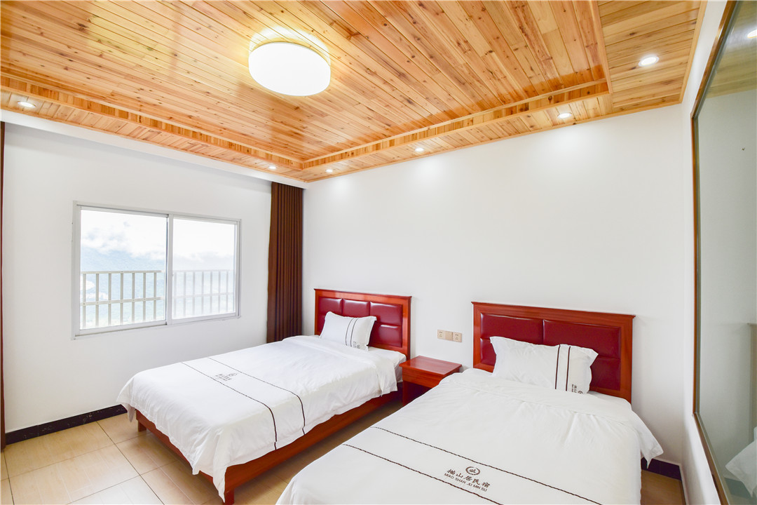 恩施描山居民宿位于大峡谷风景区高台村希友矿泉水对面,坐落于国道屯渝线,是去往大峡谷风景区必经之地。集餐饮住宿一体。承接团餐,住宿。 恩施描山居民宿开窗即可看见云雾缭绕的大峡谷,是一座天然观景台。店内设有品茶桌,棋牌室,顶层两百平米大阳台视野开阔,更是可见大峡谷“奇、险”本色,可供游客拍照留念。 大峡谷风景区环境优美,空气清新,气候凉爽是游山玩水避暑圣地,选择描山居民宿,携您更宏观的观赏峡谷风光,更亲近的感受峡谷气候! 恩施描山居民宿规模适中,配套设施齐全,配备专业的棋牌等娱乐设施,集休闲、度假、观景、娱乐为一体。 住宿环境: 客房:能同时入住49人,房型有标间、家庭房,房间均配有中央热水器,24小时供应热水,床单被套一客一换。 客房设施:每个房间均配有独立卫生间、电视、空调和无线WiFi。
