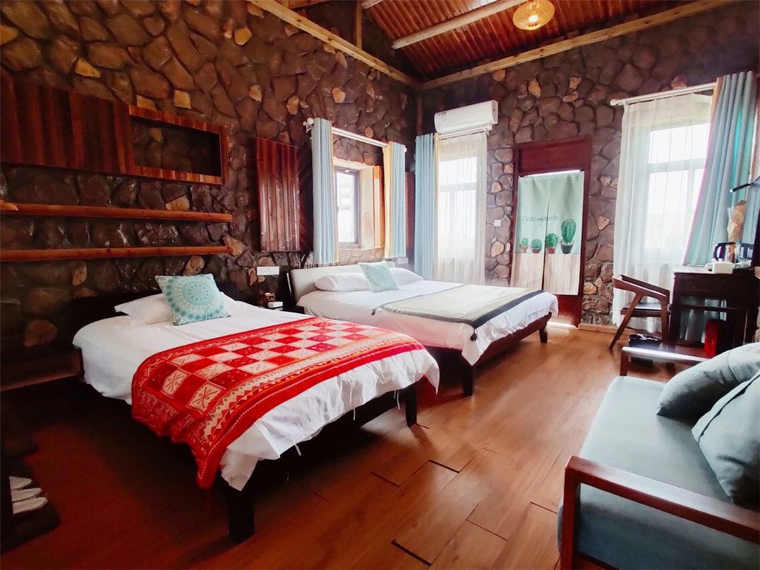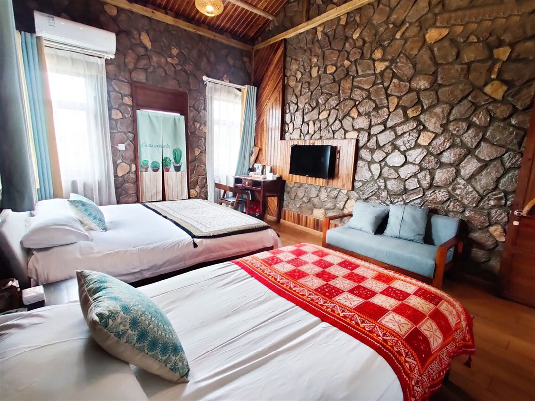 平潭岩底星空位于澳前镇磹角底村寨顶5号,是采用当地石头建造而成的一栋两层石头房子;背靠君山面朝大海在这里可以感受海风拂面以及一直想要看到的远方。 平潭岩底星空规模适中,配套设施齐全,集休闲、度假、观景、娱乐为一体。 住宿环境: 客房:能同时入住35人,房型有标间、家庭房、大床房,房间均配有中央热水器,24小时供应热水,床单被套一客一换。 客房设施:每个房间均配有独立卫生间、电视、空调和无线WiFi。