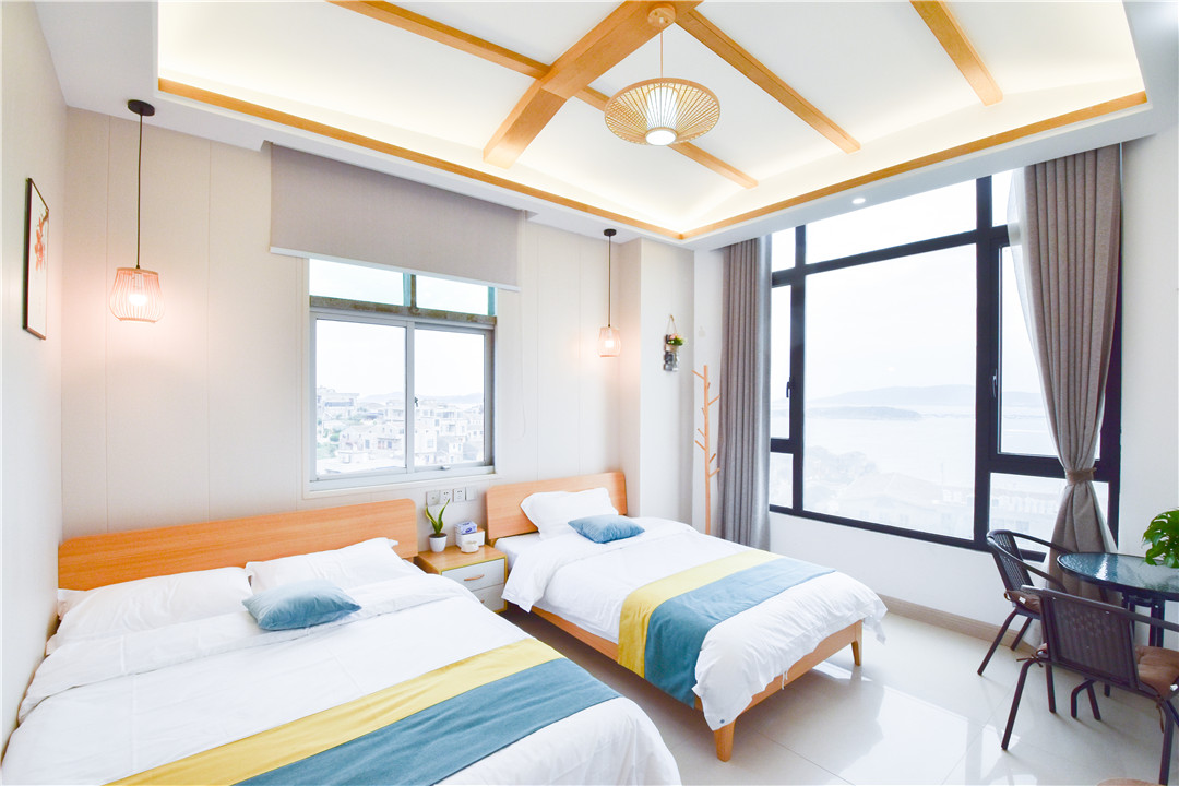 晴沙听海客栈位于平潭流水镇,旁边就是大海。相信无论您是一日游还是深度游,晴沙听海客栈都是您平潭之行的不二选择。所有极具特色的客房都配备有空调,让您感受到更加贴心细致的入住体验。瓶装水可供使用,便捷的客房设施定能让您倍感舒适。浴室配有拖鞋、24小时热水和吹风机。附近海景怡人,令人心旷神怡,特别能够放松心情,放松身体!! 晴沙听海客栈规模适中,配套设施齐全,集休闲、度假、观景、娱乐为一体。 住宿环境: 客房:能同时入住19人,房型有家庭房、大床房,房间均配有中央热水器,24小时供应热水,床单被套一客一换。 客房设施:每个房间均配有独立卫生间、电视、空调和无线WiFi。