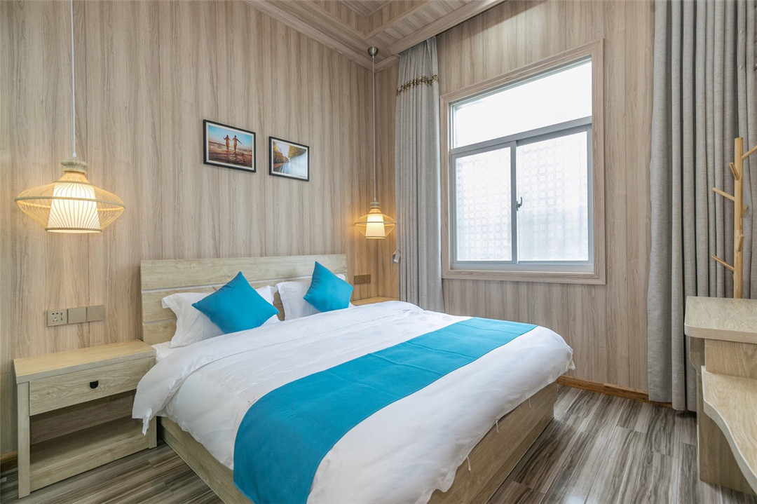 平潭海景湾民宿位于北港新门前教堂旁,整栋建筑设计简洁清爽,以纯色墙身和木质家具为主,设施齐全,环境优雅。有露天餐吧、休闲摇椅以及温馨的亲子房。二楼还设置了宽敞露台,闲时可小酌一杯。民宿也提供电动车租赁,可绕环岛路一日游,感受碧海蓝天,北港石厝等自然风光,傍晚可漫步在海岸边,欣赏“蓝眼泪”奇观。 平潭海景湾民宿规模适中,配套设施齐全,配备专业的棋牌等娱乐设施,集休闲、度假、观景、娱乐为一体。 住宿环境: 客房:能同时入住17人,房型有标间、家庭房、loft、大床房,房间均配有中央热水器,24小时供应热水,床单被套一客一换。 客房设施:每个房间均配有独立卫生间、电视、空调和无线WiFi。