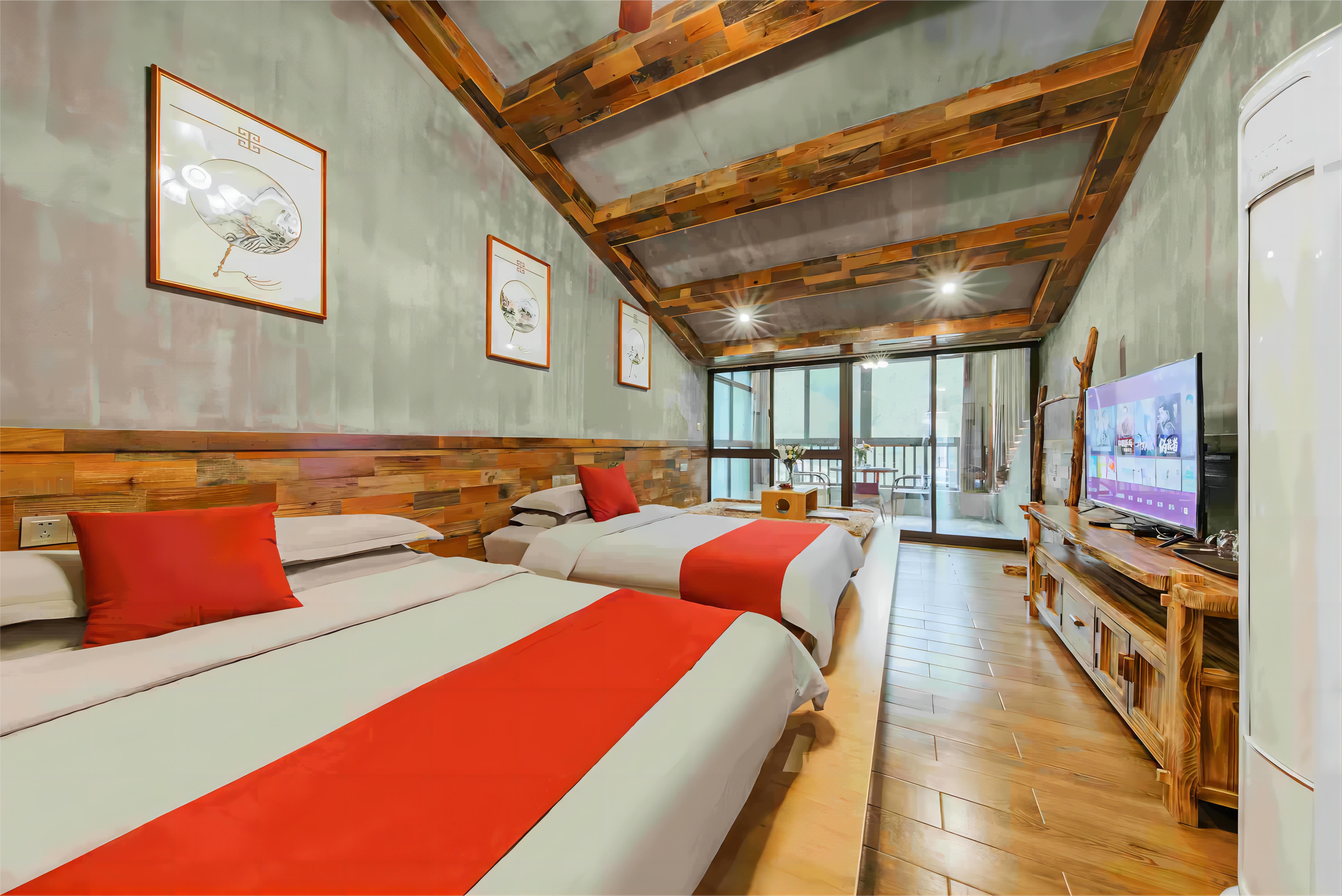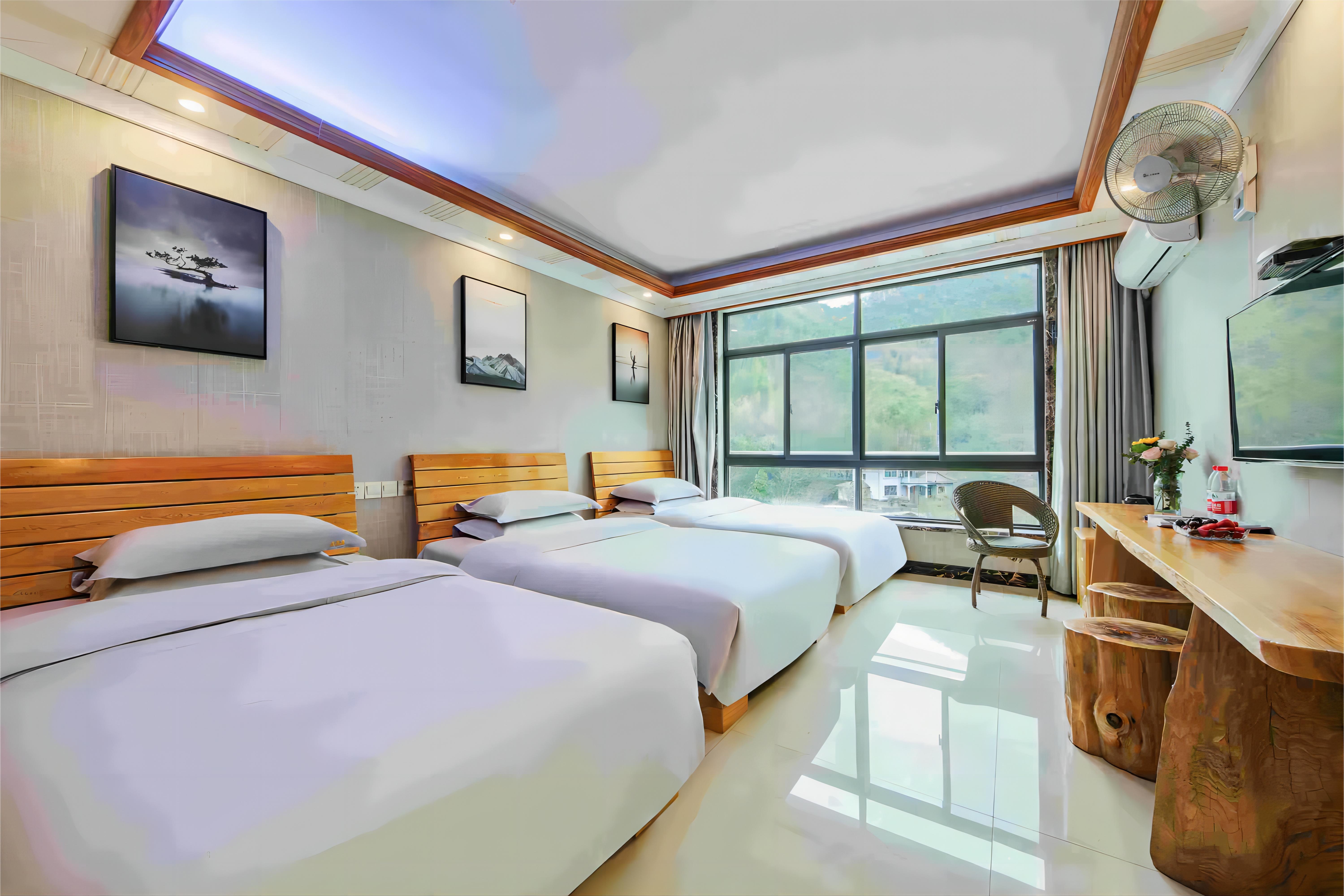 房型:标间7间(1.2),大床房2间(1.8),三人间2间(1.2),亲子间9间(1.8+1.2)