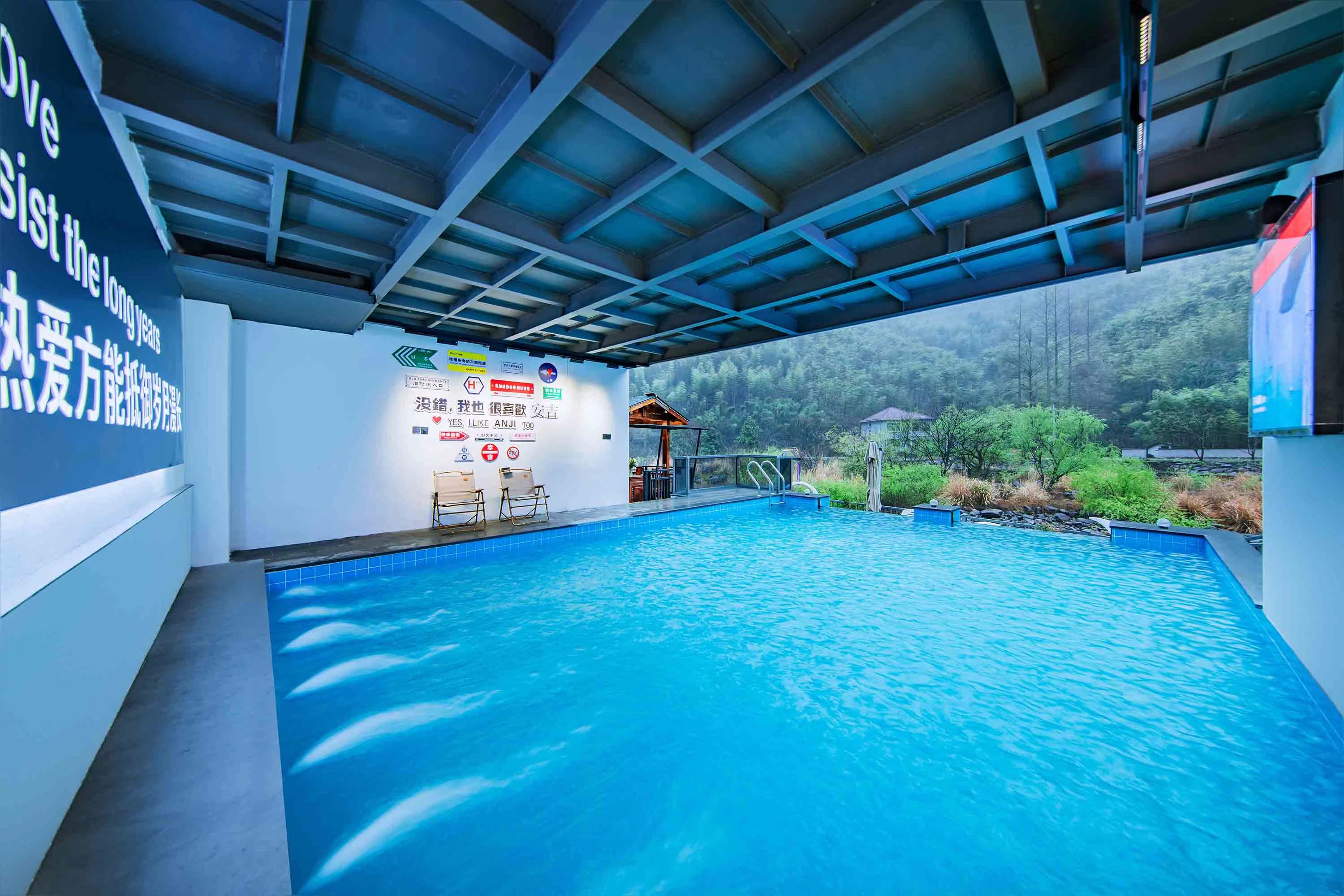 喜农舍·星空泳池民宿位于安吉县浙北峡谷漂流上游的景溪村马腰坦自然村,是去往浙北大峡谷的必经之路。民宿临水而建,面对着绵延的群山,拥抱着清新的自然。鱼儿在门前的池水中穿梭嬉戏,一侧的泳池在蓝天下更是惹人喜欢。精致的小院里种植着各种绿植盆栽,质朴的凉亭供人品茗聊天。架子上摆放着不同时代的老物件,顿时令人心生满满的旧日情怀。餐厅、KTV、露台等设施这里一样都不可或缺,只为让客人的度假时光更加悠闲自在。二十余间温馨舒适的客房各有特点,或望竹影婆娑,或闻溪水潺潺,或观繁星点点,随你喜欢。良好的地段,优美的环境! 喜农舍·星空泳池民宿家庭农场规模适中,配套设施齐全,配备专业的KTV设备、棋牌等娱乐设施,集休闲、度假、观景、娱乐为一体。 住宿环境: 客房:能同时入住25人,房型有标间、大床房、单人间,房间均配有中央热水器,24小时供应热水,床单被套一客一换。 客房设施:每个房间均配有独立卫生间、电视、空调和无线WiFi。