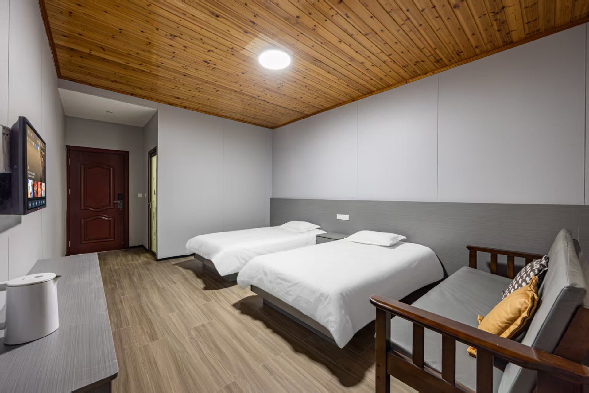 标间9间(1.2),大床1间(1.8),三人间5间(1.2),家庭房6间(1.8+1)