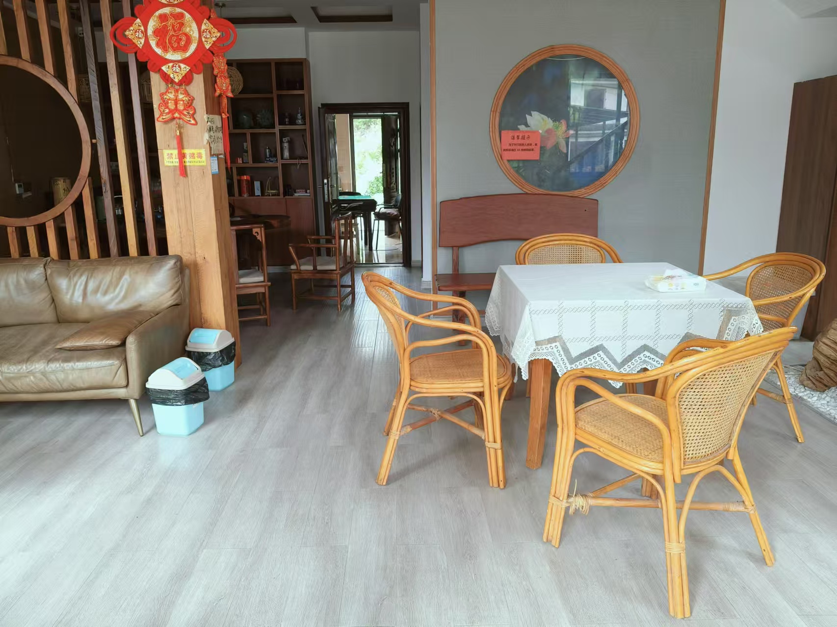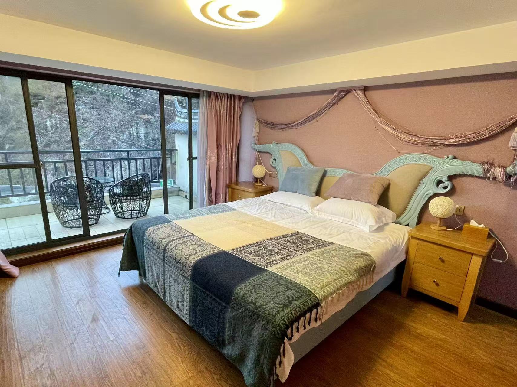 云庐初晓民宿位于仙居县淡竹乡石盟垟自然村,周围峰峦叠嶂,小溪水潺潺。望远山葱茏,享清风拂面,观满天星斗,品一方山水。民宿装修独特精致,完美的家具带给你不一样的体验,超大露台可以赏风景观日落,这里风景美妙动人,饭菜香甜可口,期待您的到来! 云庐初晓民宿规模适中,配套设施齐全,配备专业的KTV设备、棋牌等娱乐设施,集休闲、度假、观景、娱乐为一体。 住宿环境: 客房:能同时入住18人,房型有标间3间(1.2),大床房3间(1.8),亲子间2间(1.8+1.2),房间均配有中央热水器,24小时供应热水,床单被套一客一换。 客房设施:每个房间均配有独立卫生间、电视、空调和无线WiFi。