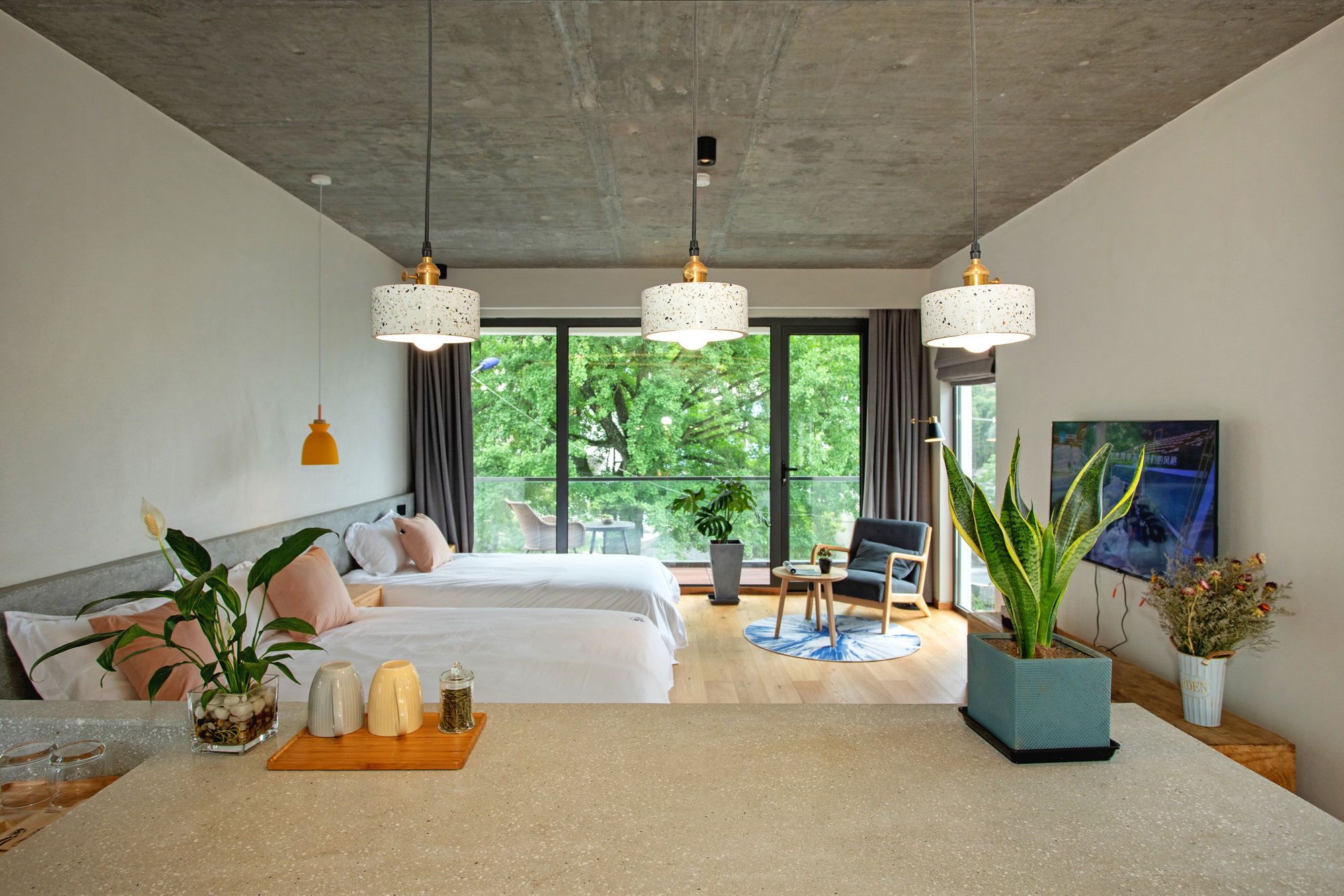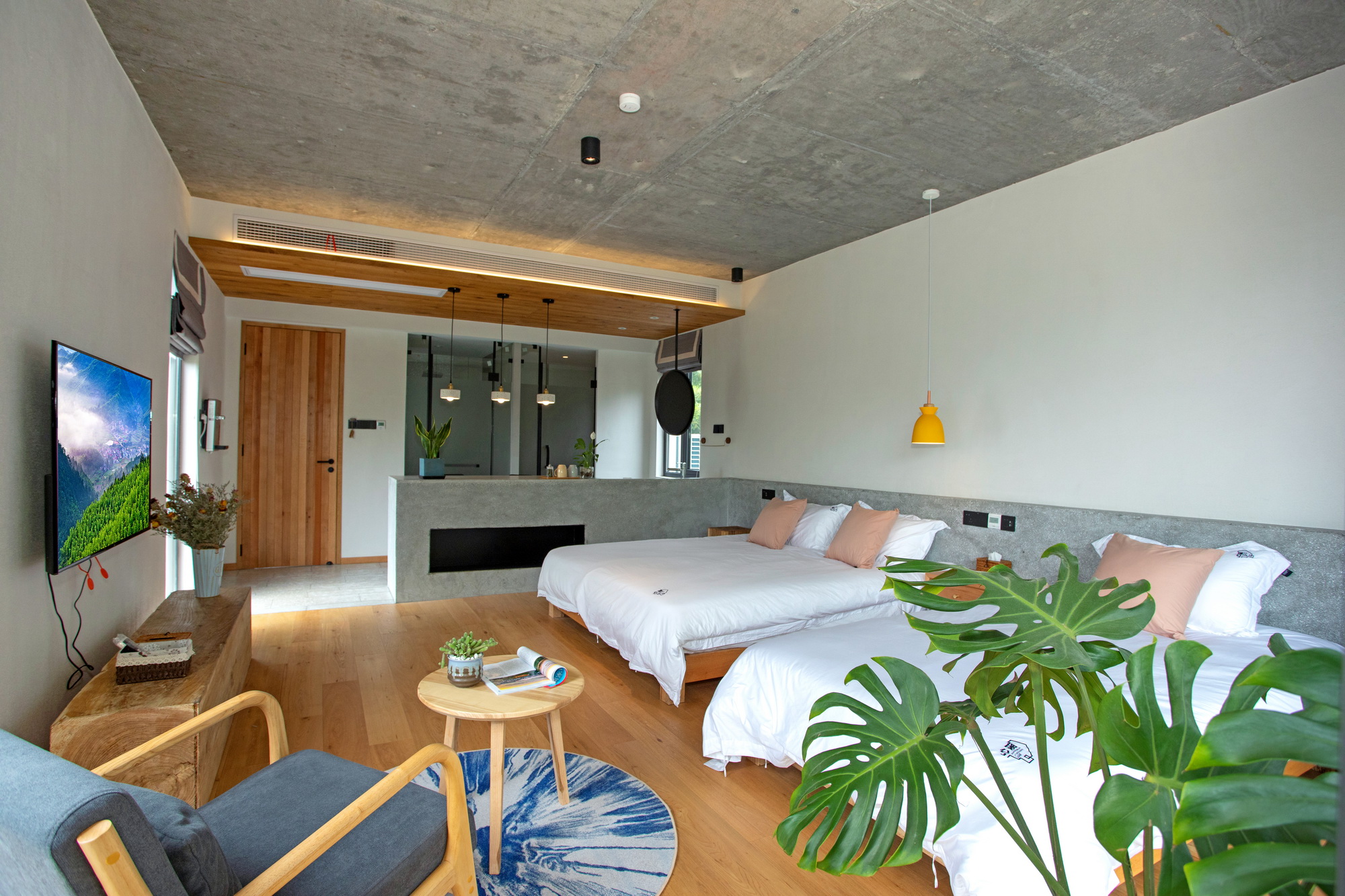 标间 2间,亲子间 3间,大床 5间。