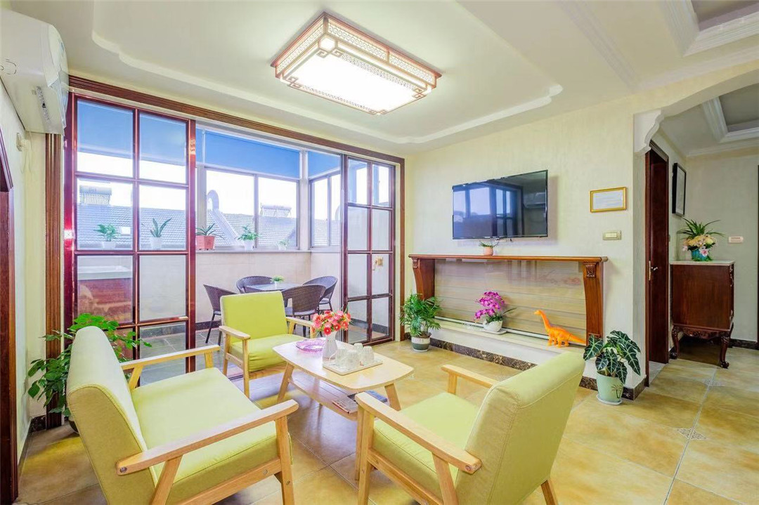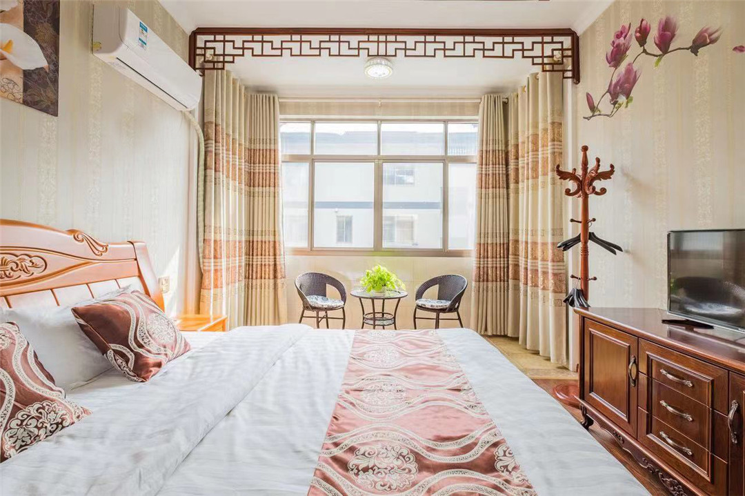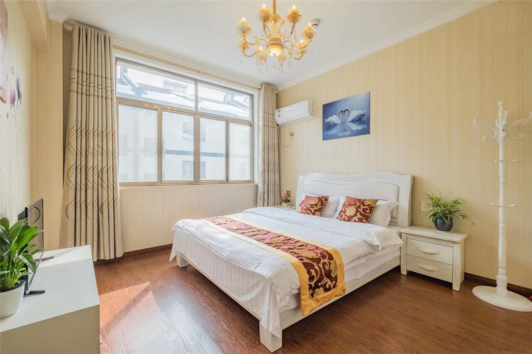如果你希望找到一个地方,在那里你既能享受到入住酒店般的贴心服务,又能享受居家的快乐,不仅能拥有独立的卧室、客厅、卫浴间等等,还可以在厨房里自己烹饪美味的家肴,那么,相信这里将是你们上佳选择,不复杂不苛求,简单而又自由,就是为舒服的状态,温馨而又非常适度。 公寓装修风格的特点是简洁的新中式居家风格.实用而又简洁,追求的是舒心的感觉,是幸福的味道,不是奢华,在这里没有过多的装饰,没有美轮美奂的布局,使用简单而又明快的线条,暖色系的颜色搭配,给你满满的温馨和浪漫,加上少量装饰元素的点缀,让整个空间看起来不失单调又清爽靓丽。公寓属于比较经济的类型,拥有一个开放式的厨房,宽敞明亮,基本器具齐全。这里很适合忙碌的都市人在假日携带一群亲朋好友一起来这里度过轻松悠闲的时光。 每个人都在试图地去寻找一种能够彻底放松的生活空间,即便这里是你们为了旅行只住上一晚的地方,也希望能够带来家的感觉,营造出一种浪漫的生活情调,远离城市的喧嚣与忙碌,让人在结束一天的行程之后来到这个小窝,感受到更多的生活乐趣和一种温馨舒适的氛围,打造专属于您和家人好友的完美公寓。 住宿环境: 客房:能同时入住18人,房型有大床房,房间均配有中央热水器,24小时供应热水,床单被套一客一换。 客房设施:每个房间均配有独立卫生间、电视、空调和无线WiFi。